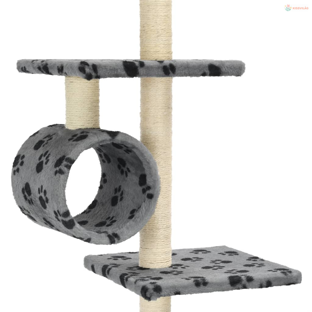 Szürke macskabútor szizál kaparófákkal 260 cm