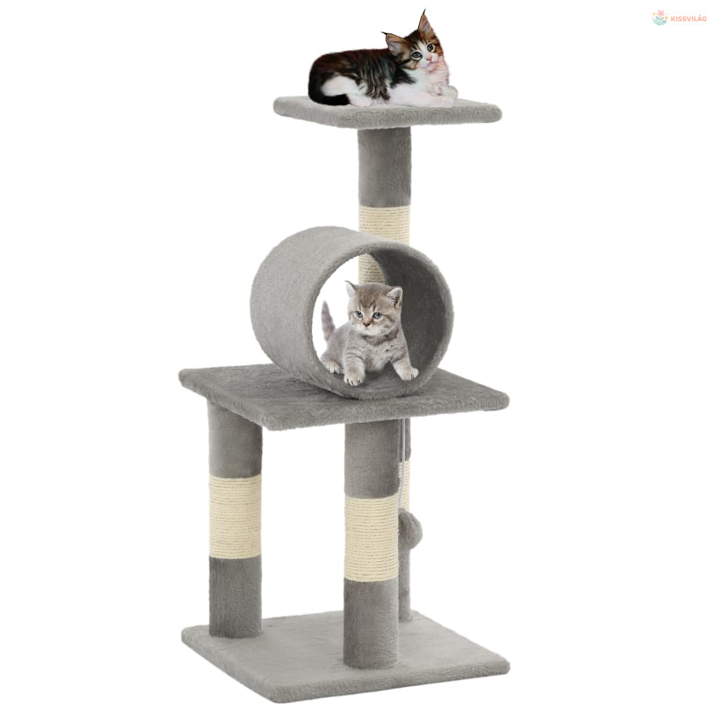 Szürke macskabútor szizál kaparófákkal 65 cm