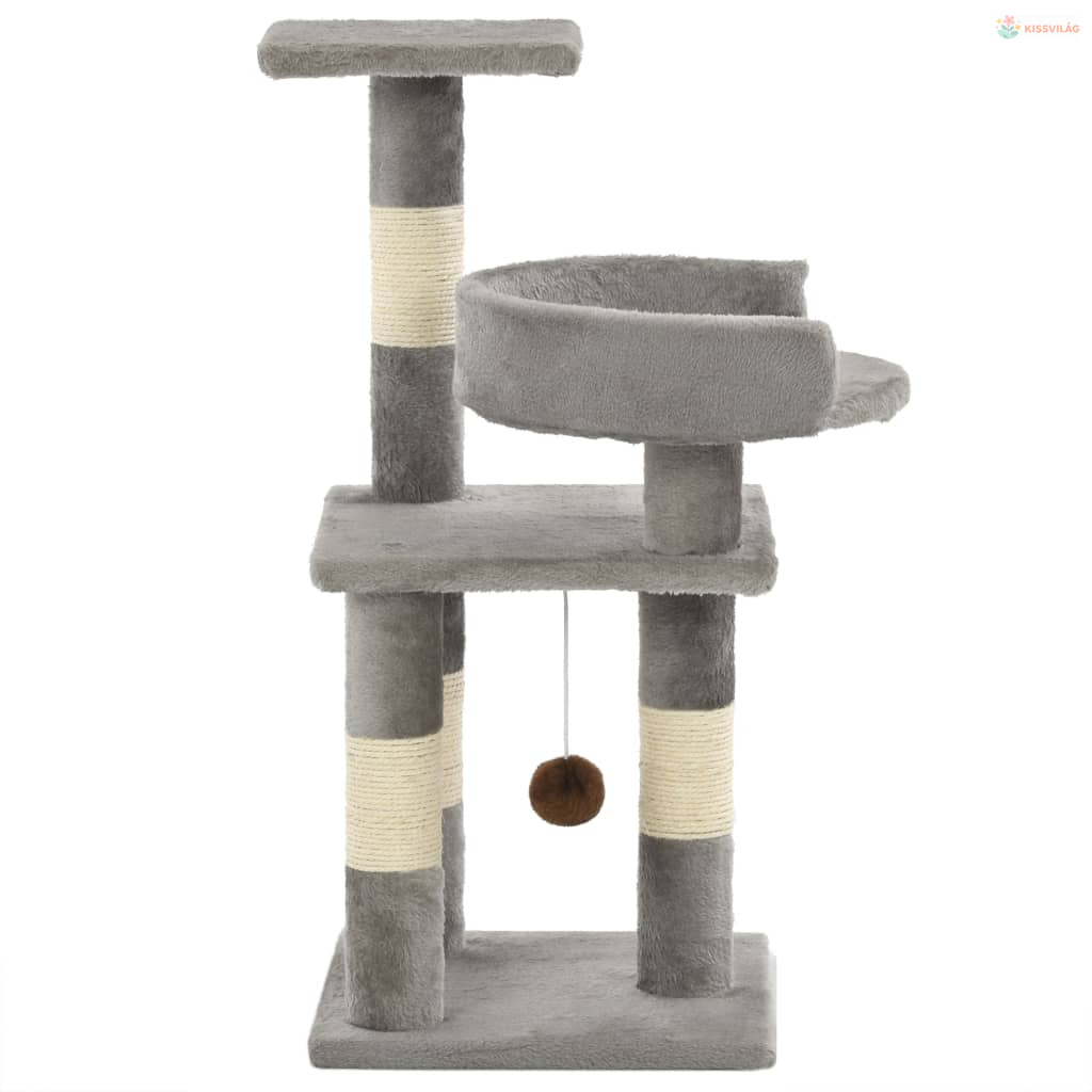 Szürke macskabútor szizál kaparófákkal 65 cm