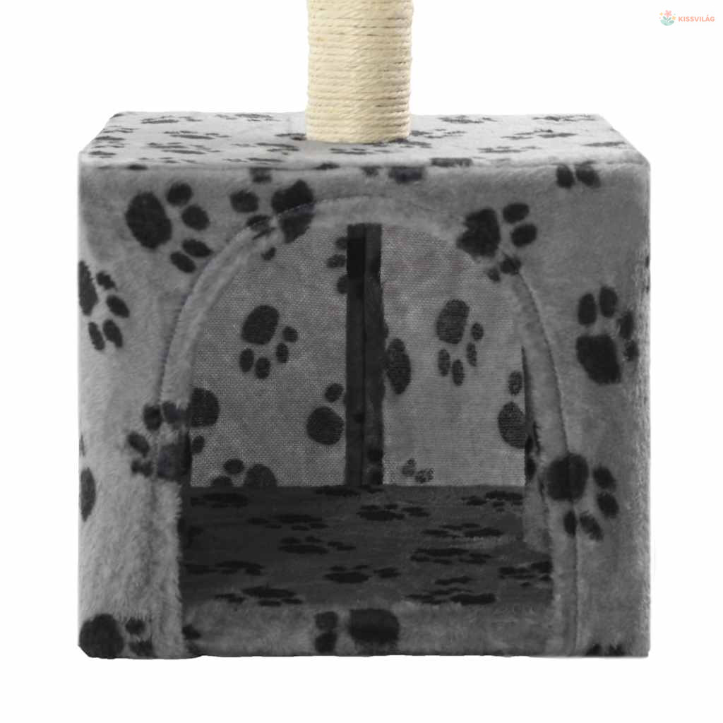 A plüss szőnyeges felület nagyon kényelmes, a kaparófa pedig szizálkötélbe van csomagolva. A macskabútoron egy kényelmes házikó és egy emelvény is található, amelyek elszórakoztatják majd kis barátait. A kaparófa alapja erős és stabil. Kiscicák számára alkalmas.