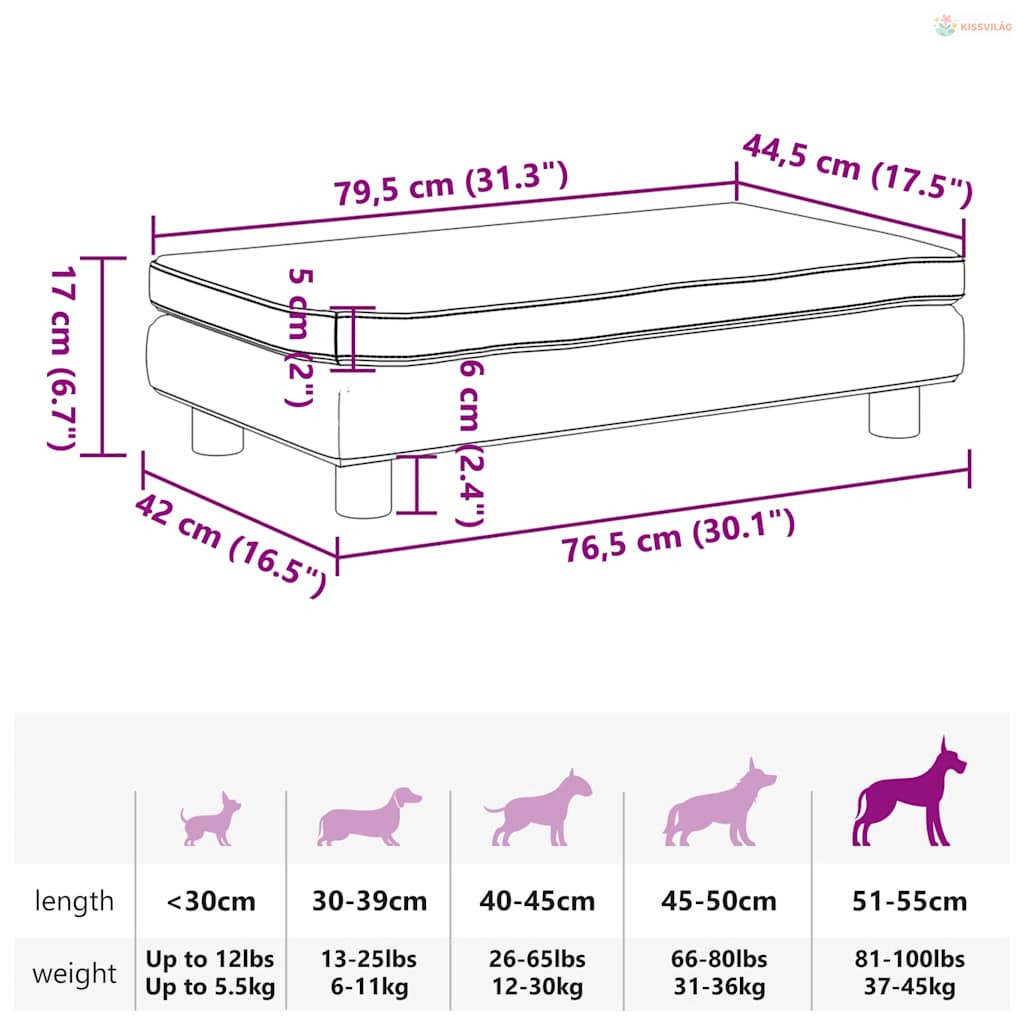 • Kutyaágy mérete: 100 x 50 x 30 cm (Szé x Mé x Ma)
