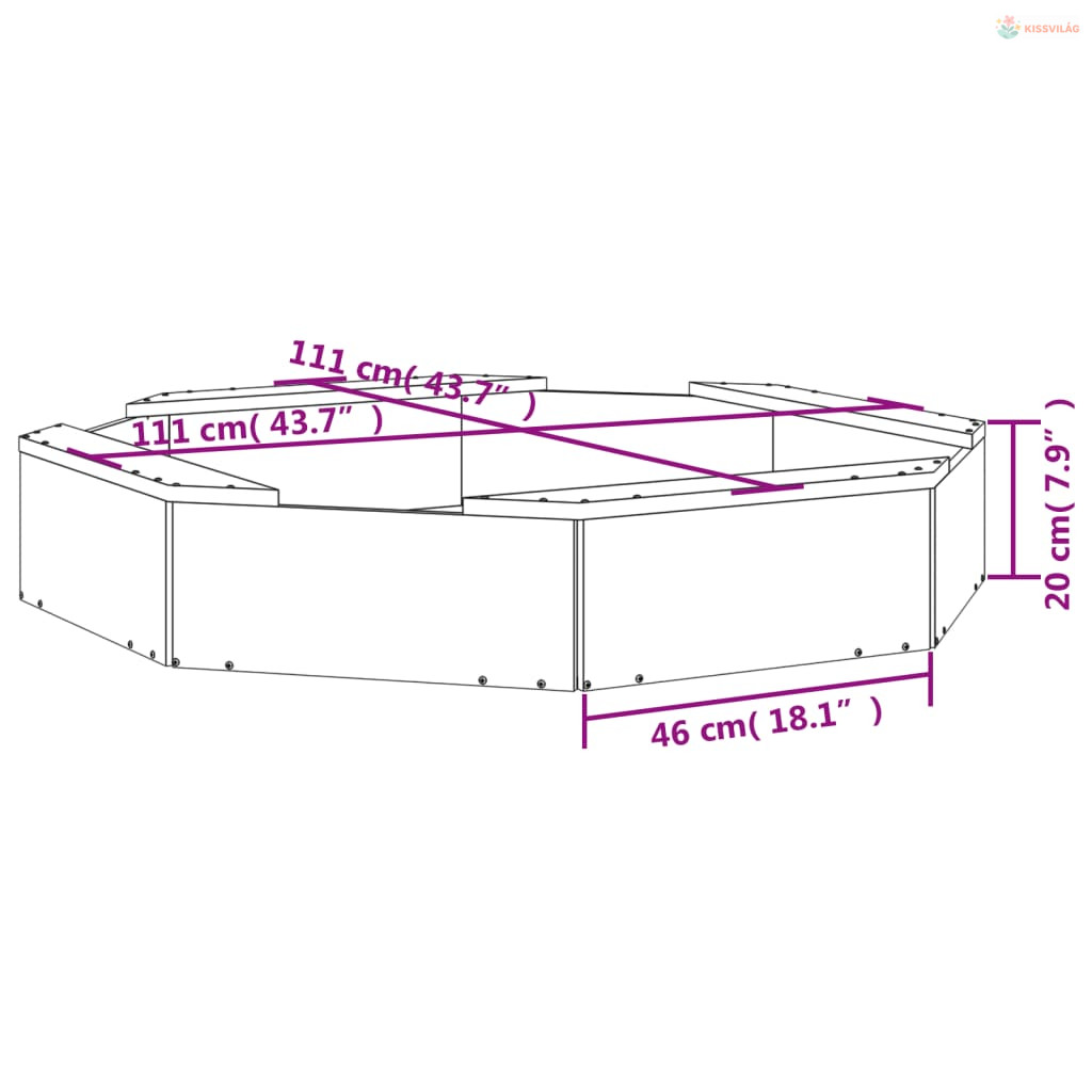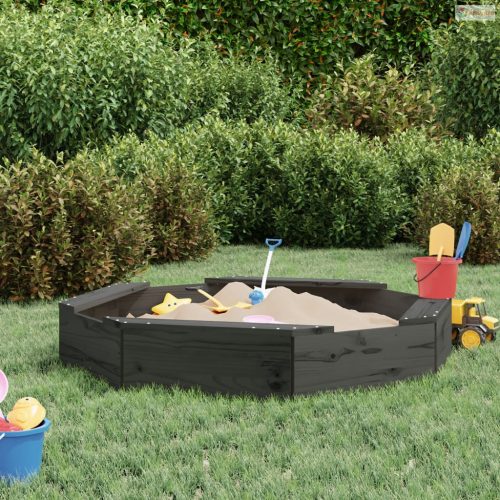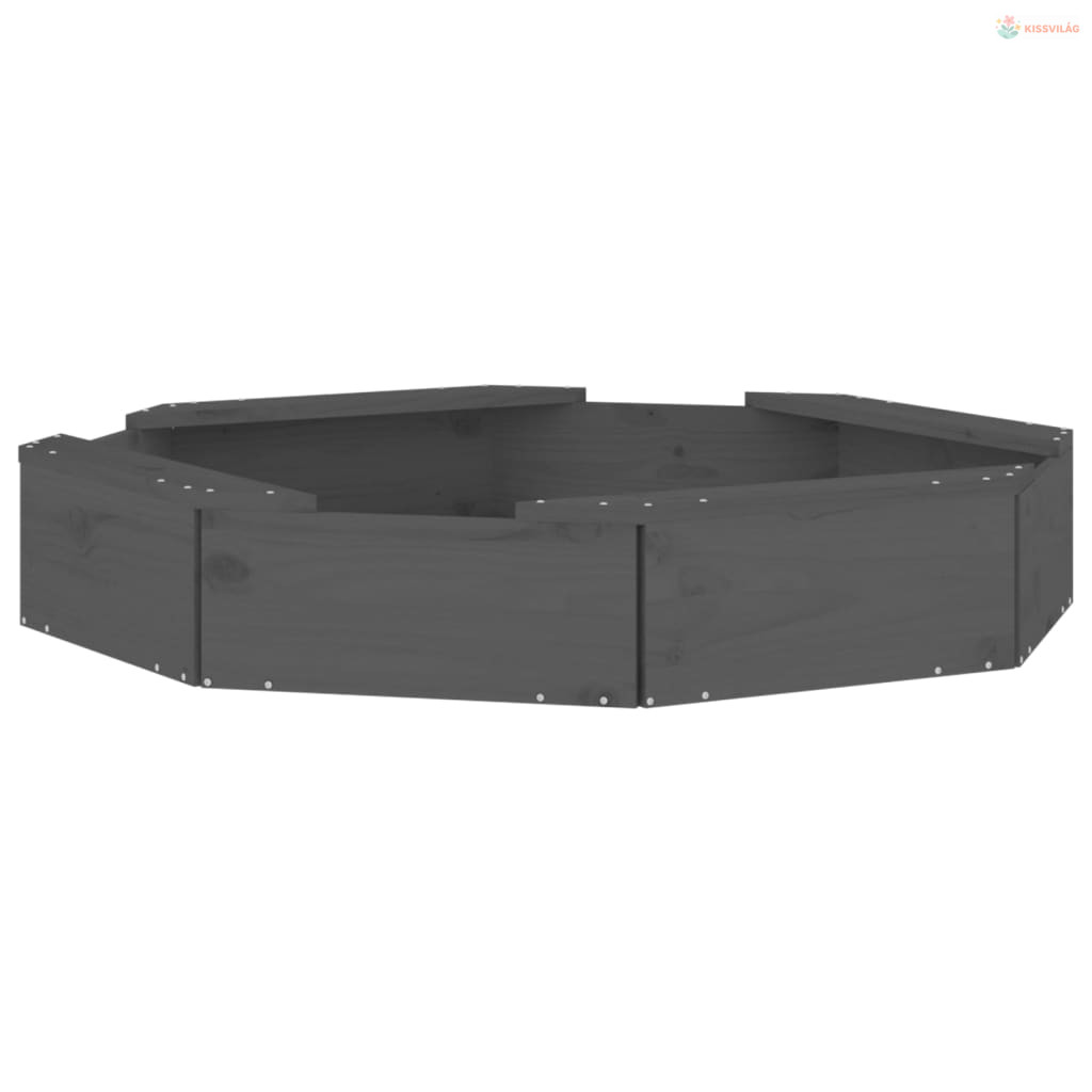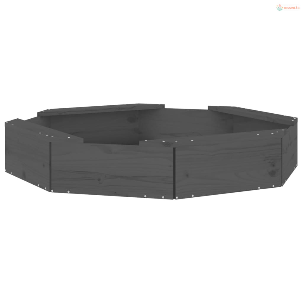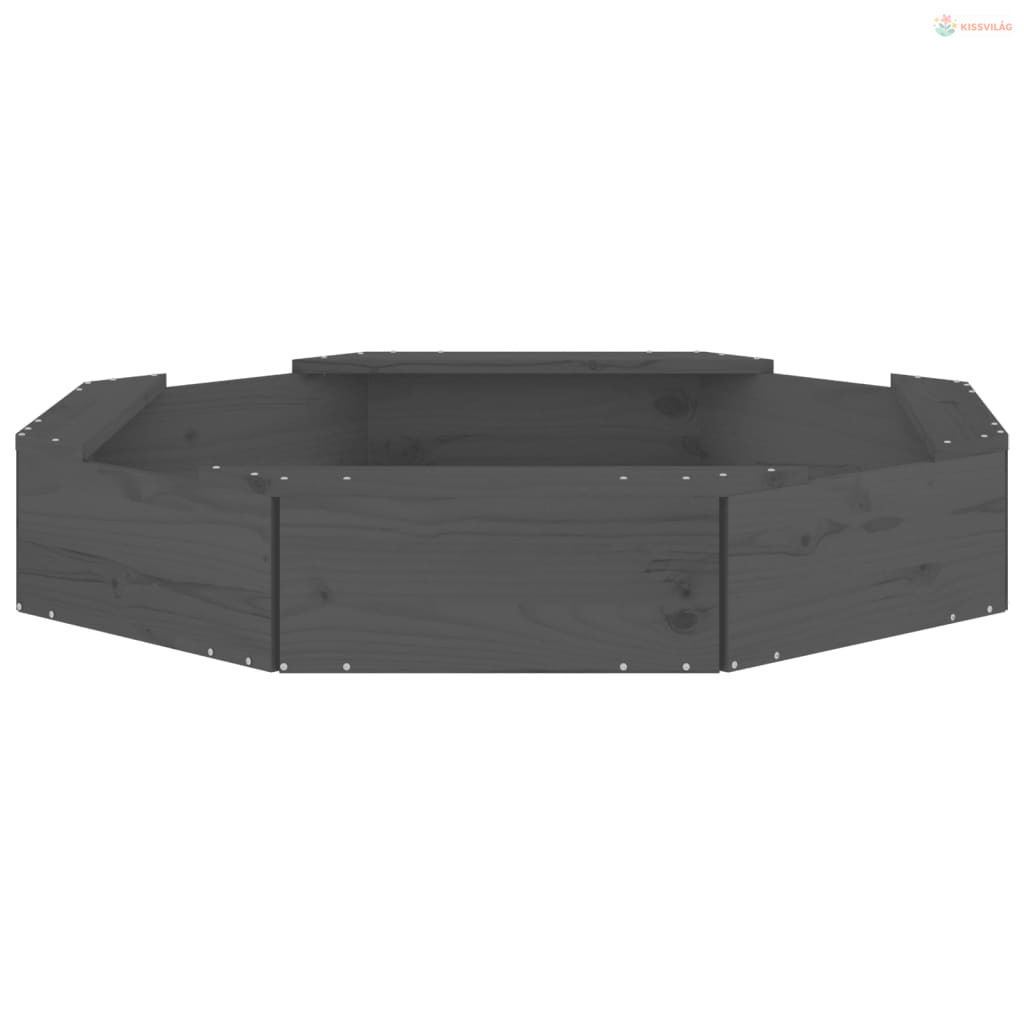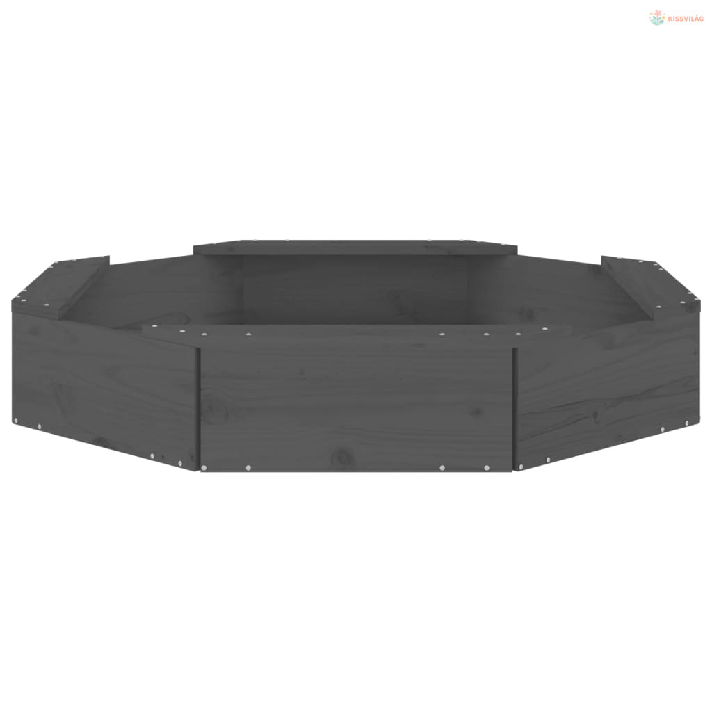 Szürke nyolcszög alakú tömör fenyőfa homokozó ülésekkel