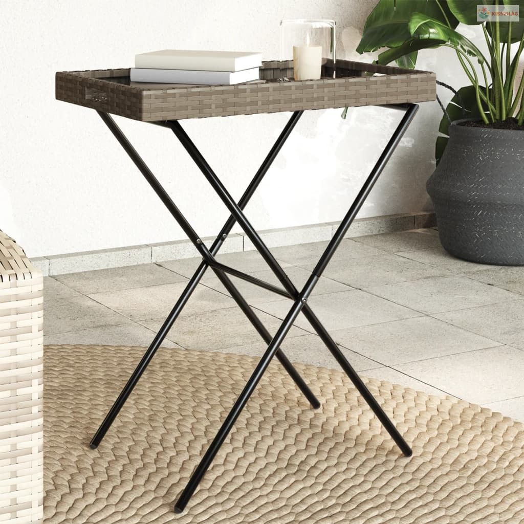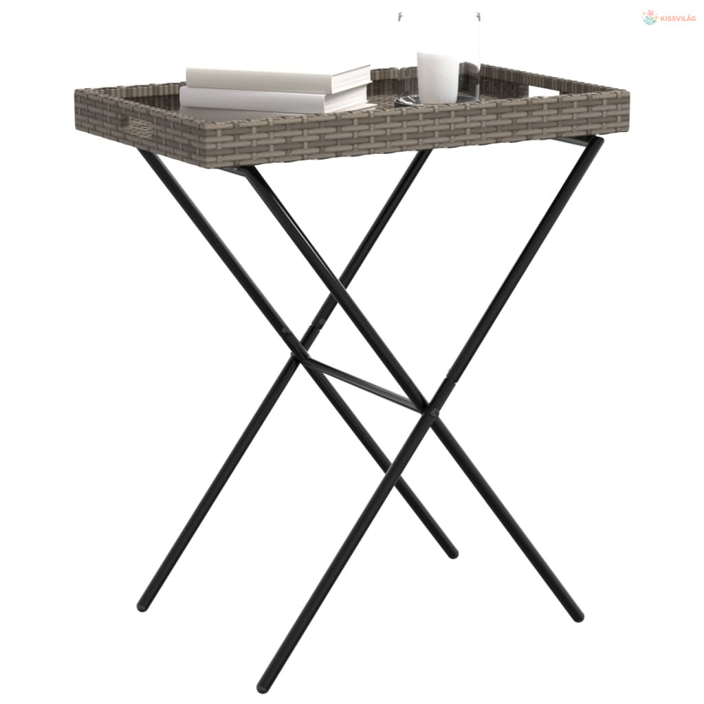 Szürke összecsukható polyrattan tálcaasztal 65 x 40 x 75 cm