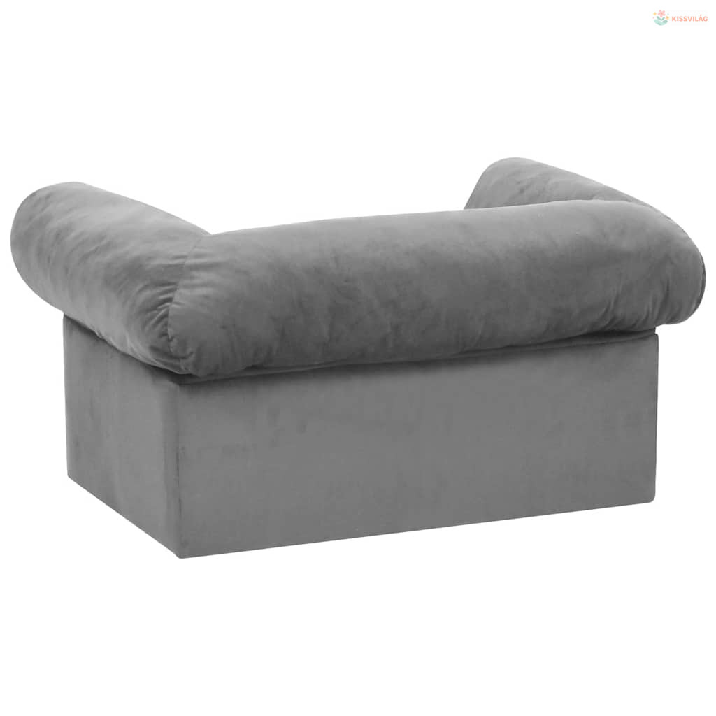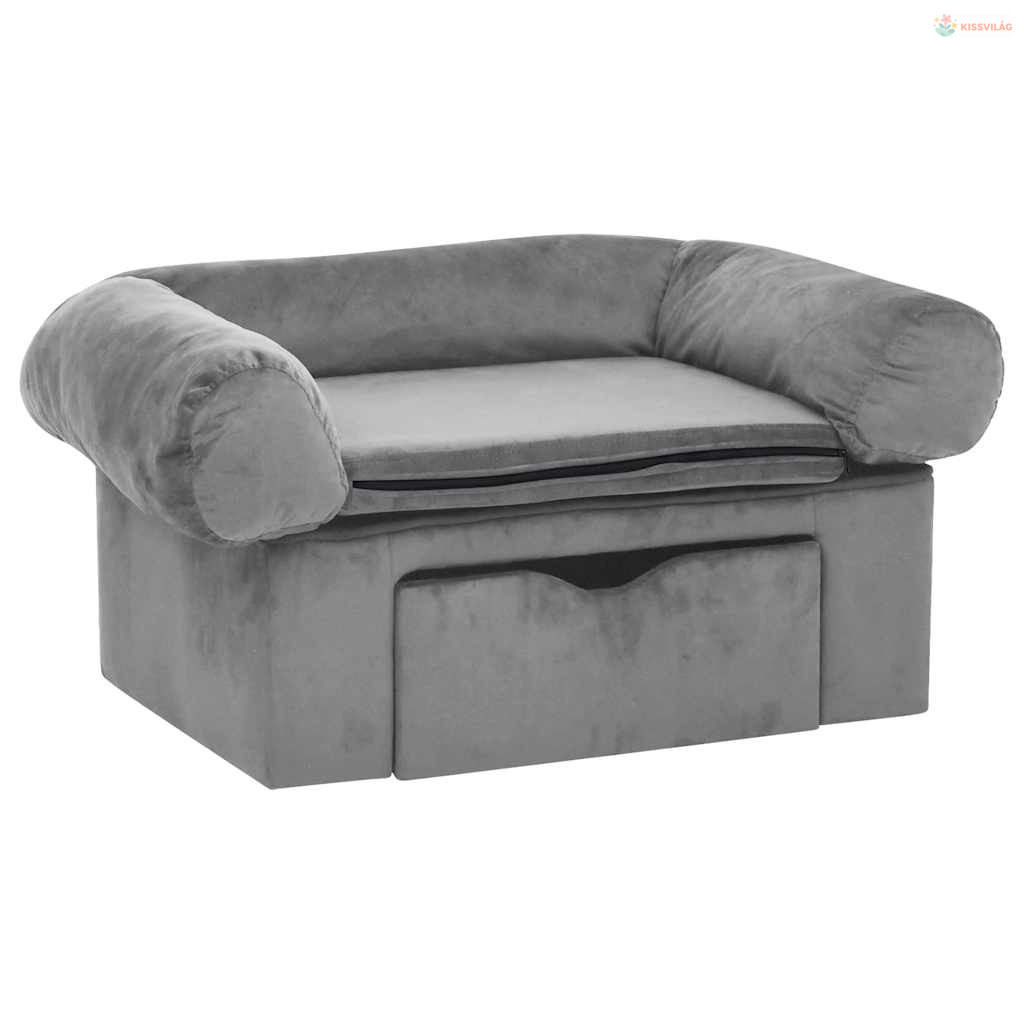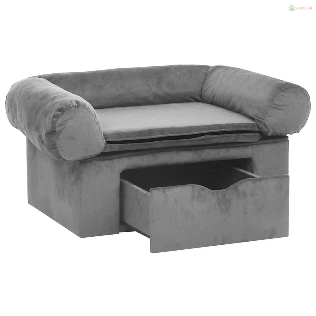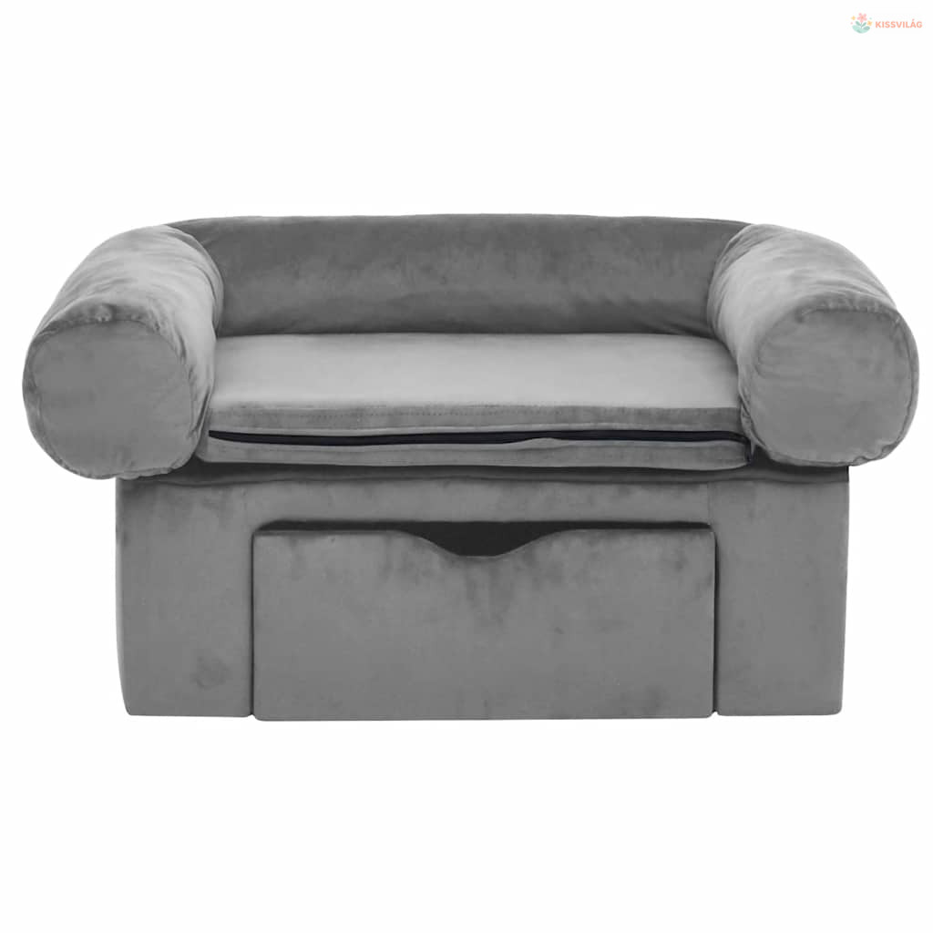 Szürke plüss kutyakanapé fiókkal 75 x 50 x 38 cm