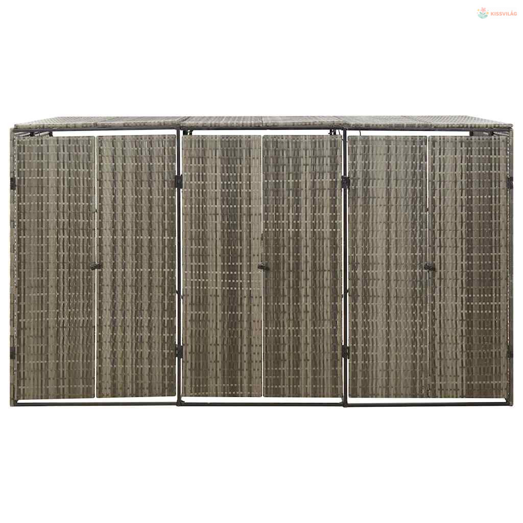 Szürke polyrattan hármas kerekeskuka tárolófészer 207x80x117 cm