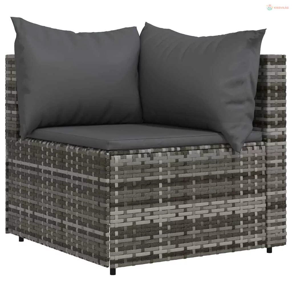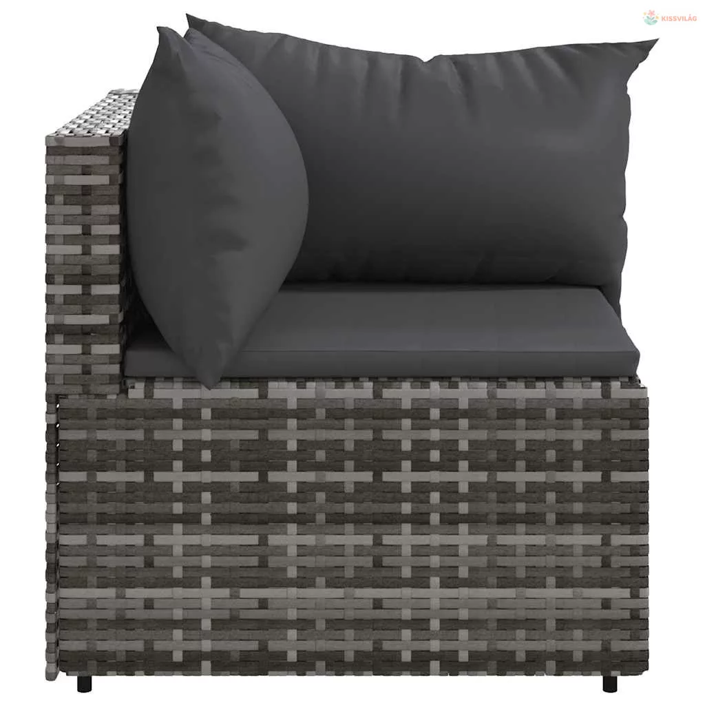 Szürke polyrattan kerti sarokkanapé párnákkal
