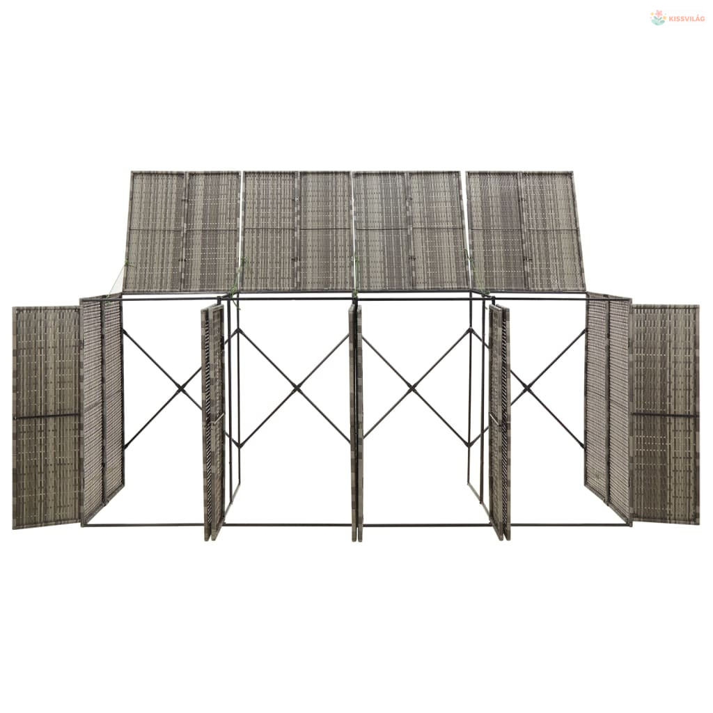 Szürke polyrattan négyes kerekeskuka tárolófészer 274x80x117 cm