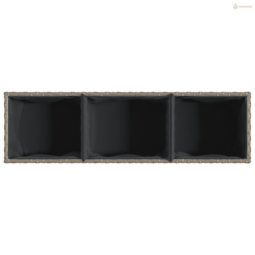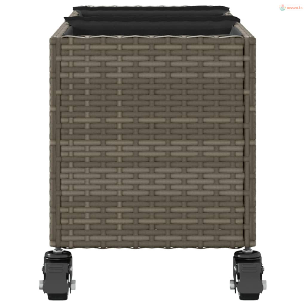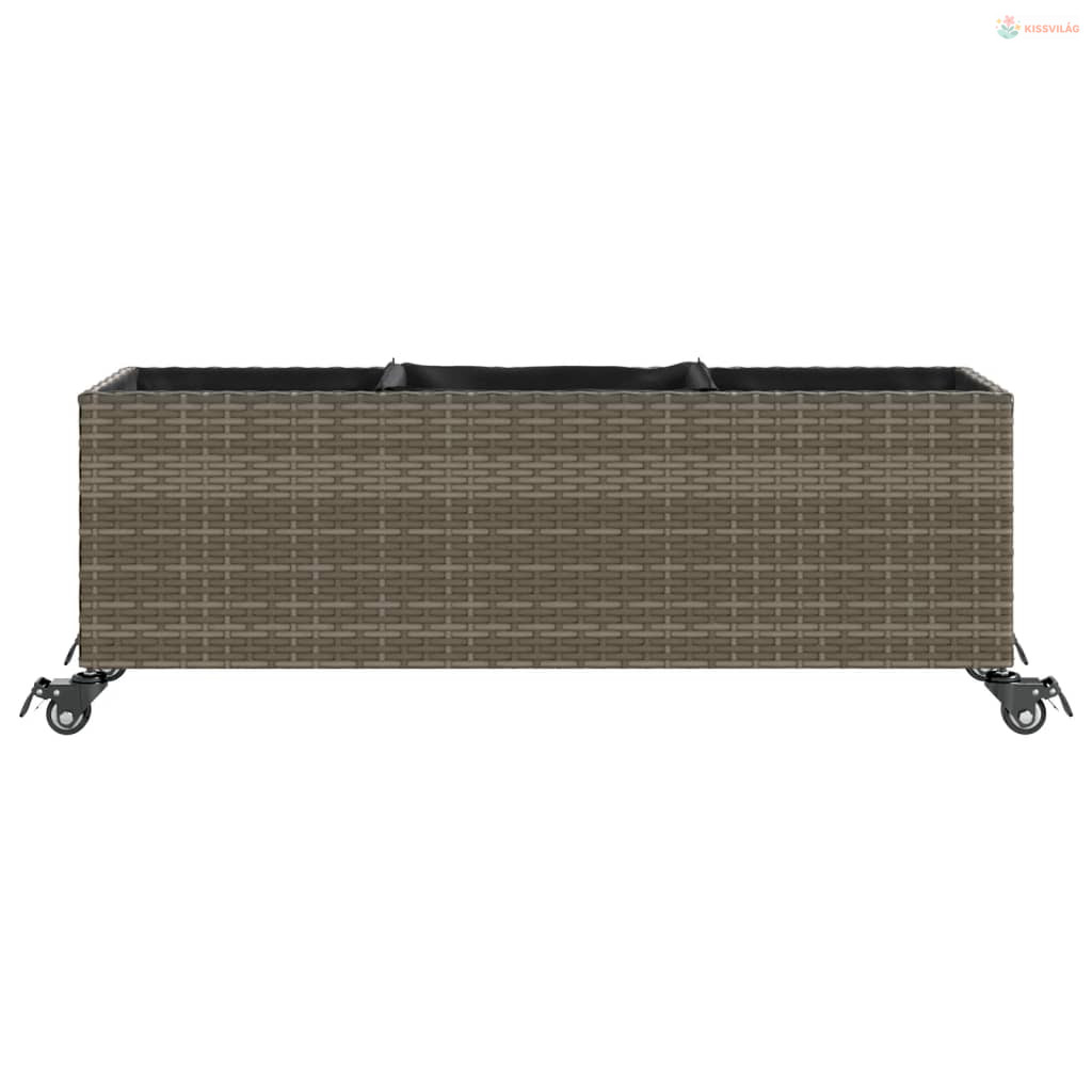 Szürke polyrattan növénytartó kerékkel/3 cseréppel 107x32x38 cm