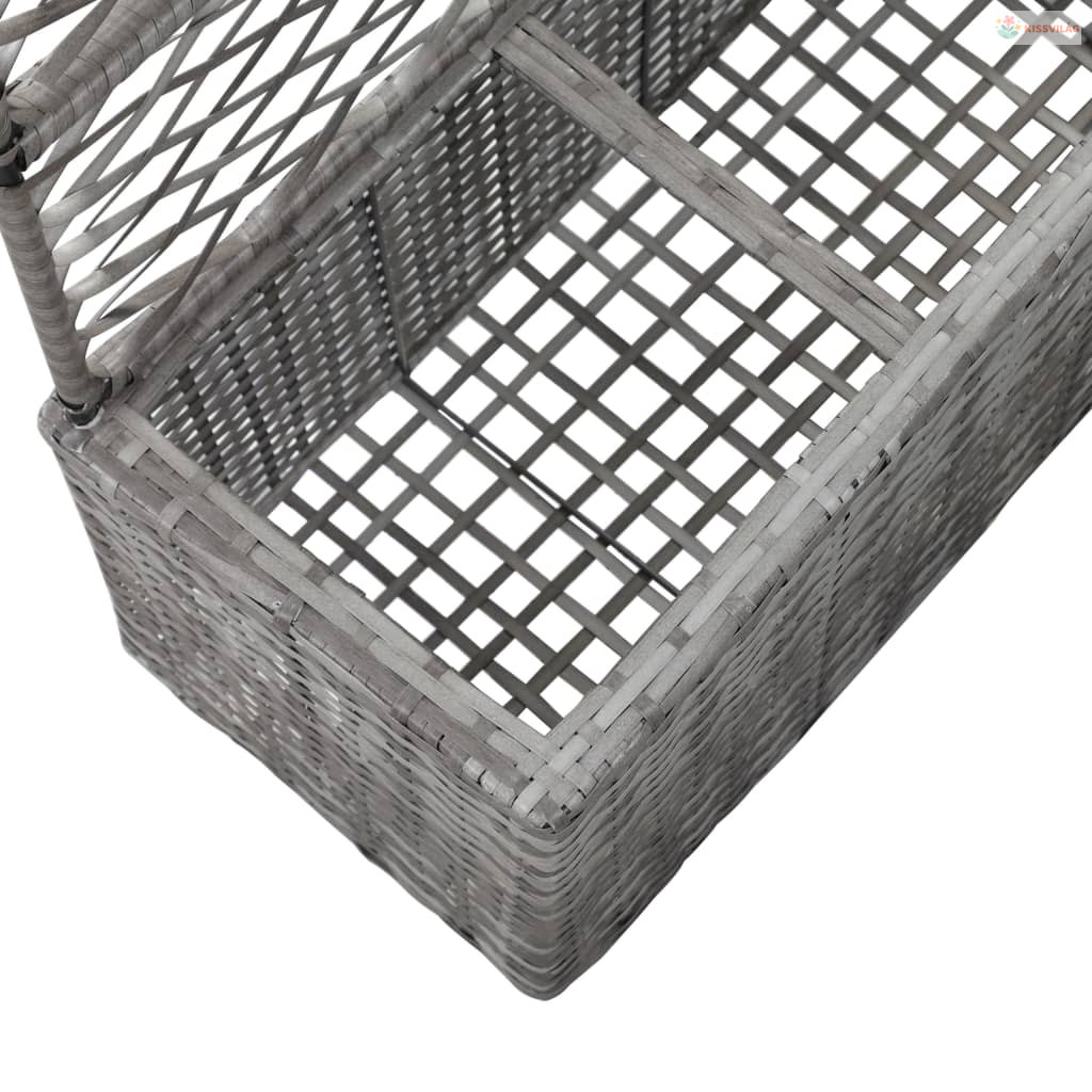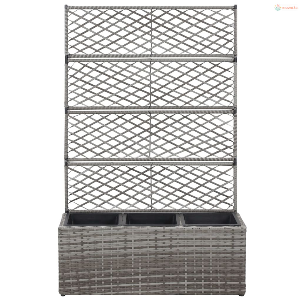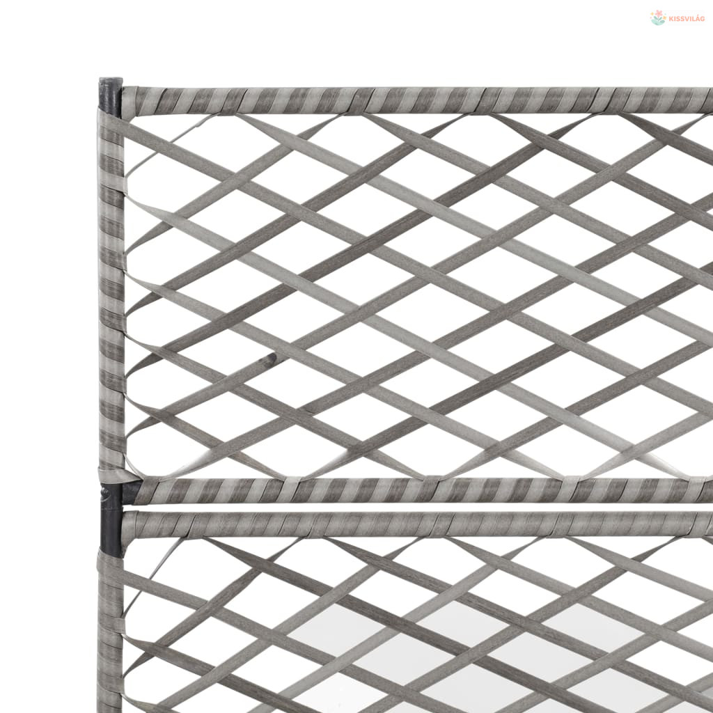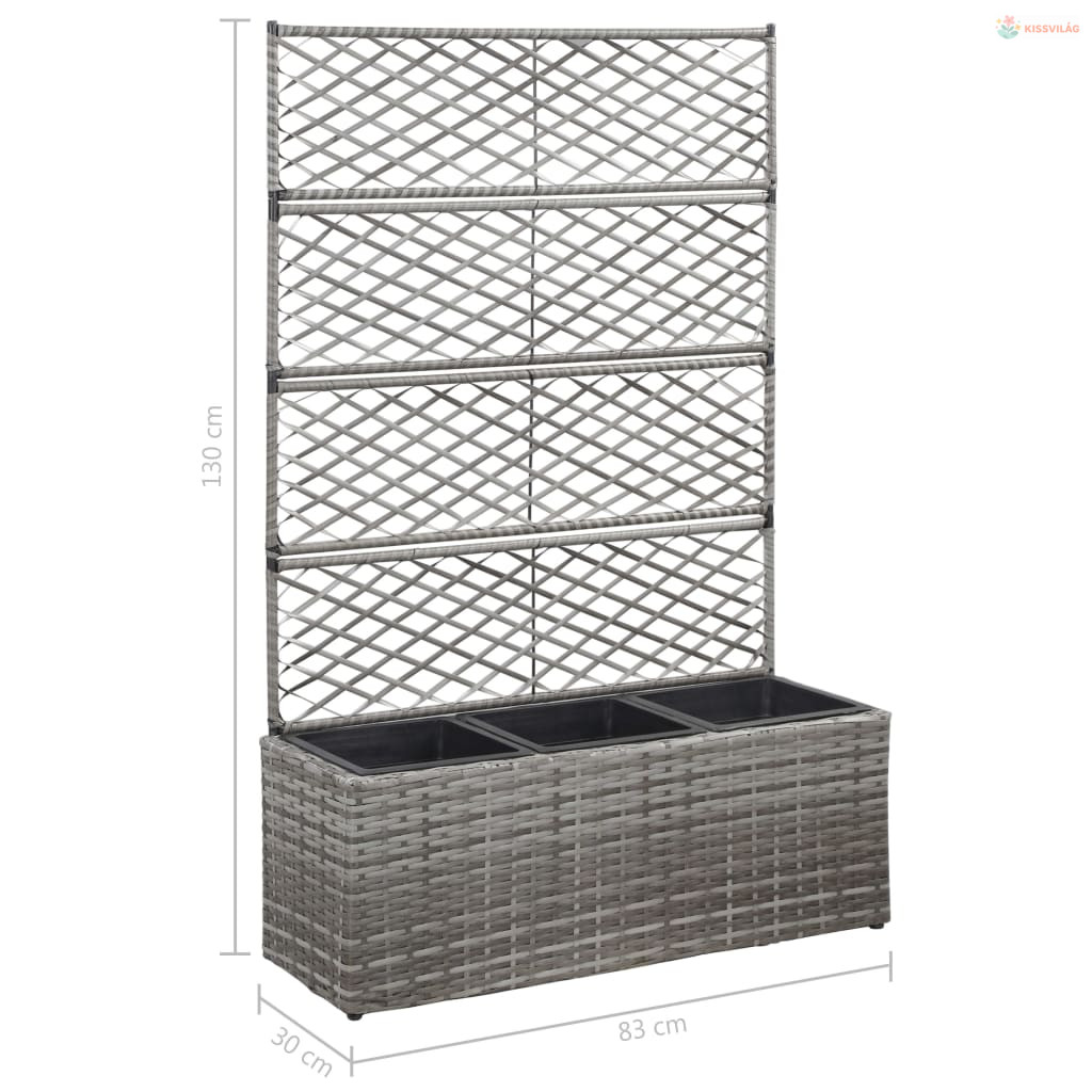 Szürke rácsos polyrattan magaságyás 3 kaspóval 83 x 30 x 130 cm
