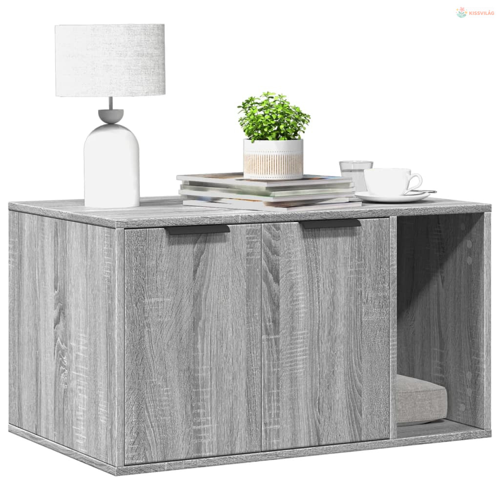 Szürke sonoma színű szerelt fa macskaalomdoboz 80 x 50 x 45 cm