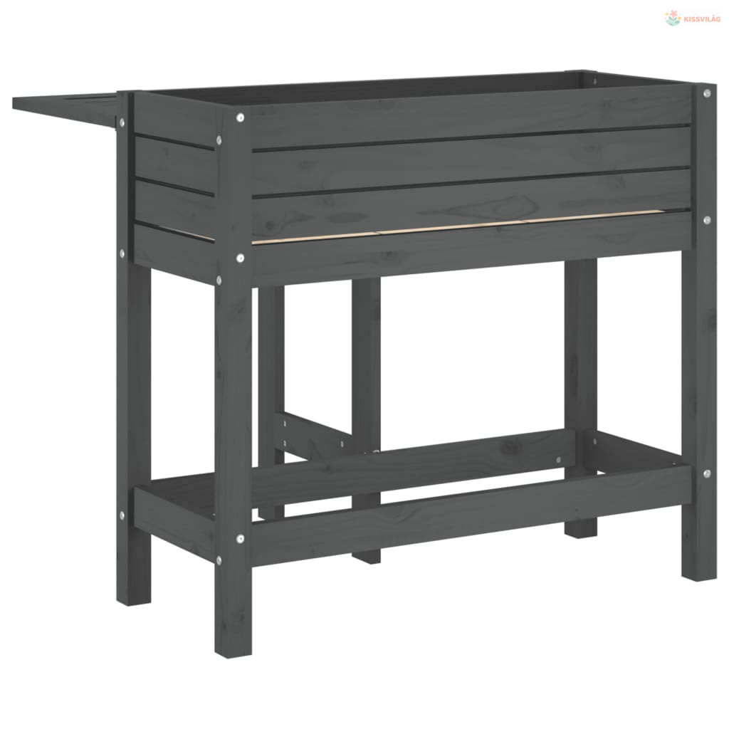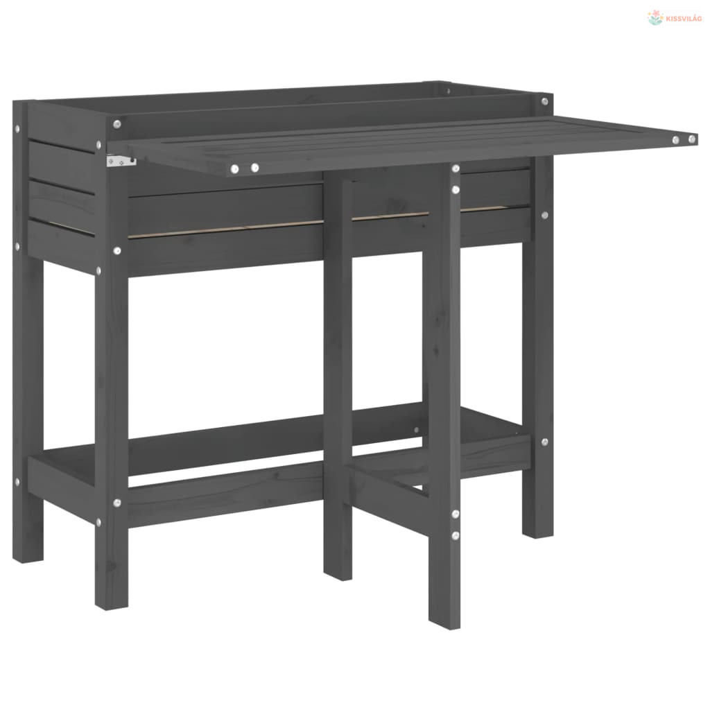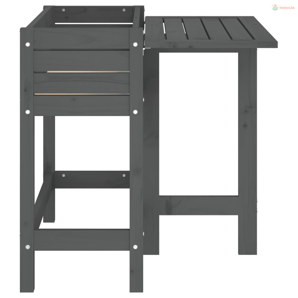 Szürke tömör fa kerti ültetőláda összecsukható asztallappal