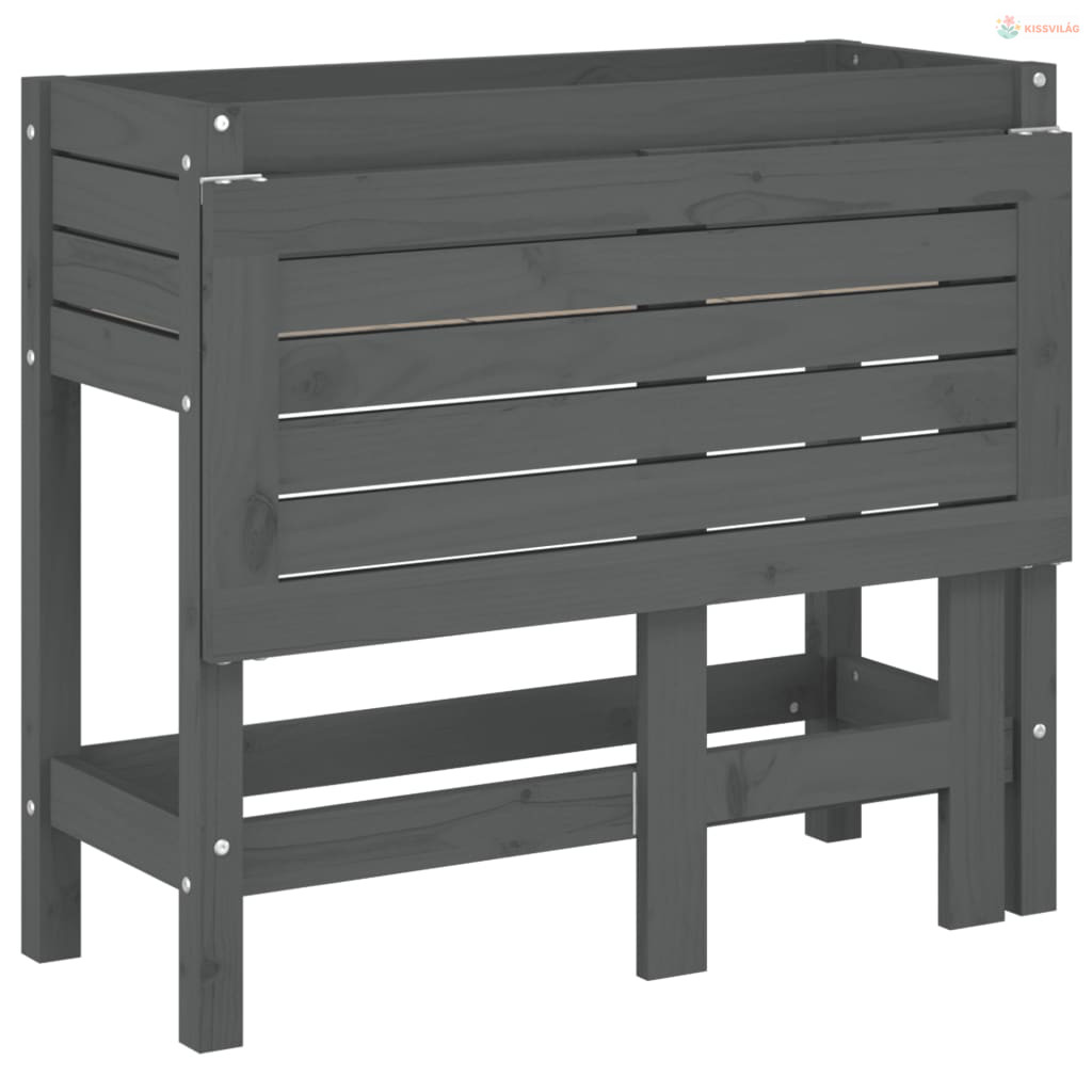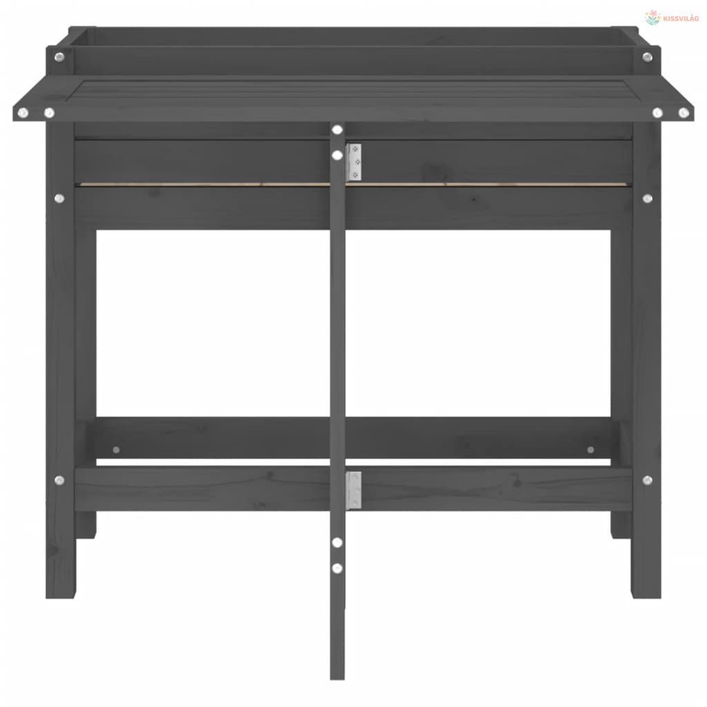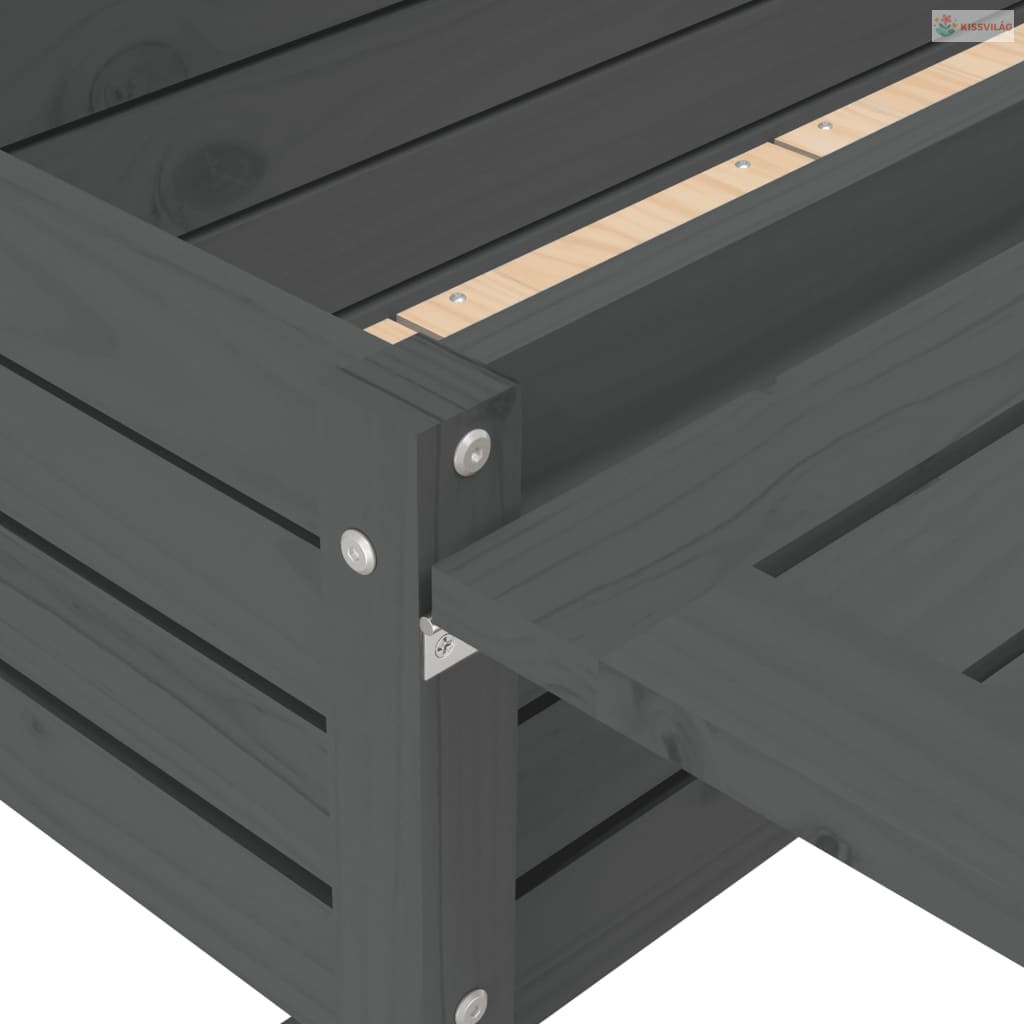 Szürke tömör fa kerti ültetőláda összecsukható asztallappal