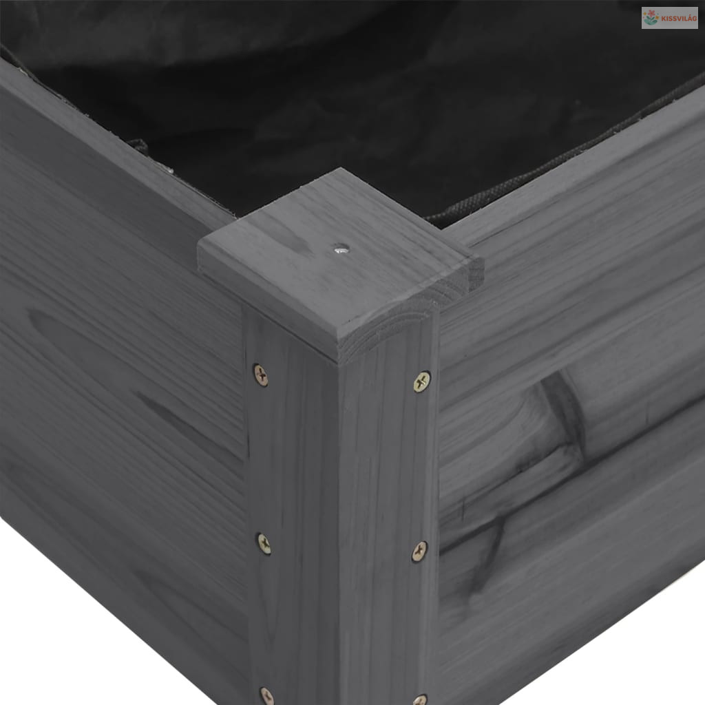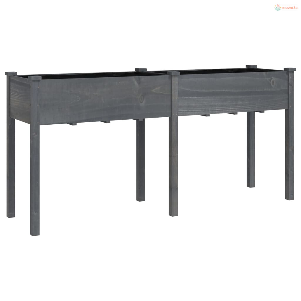 Szürke tömör fenyőfa kerti ültetőláda béléssel 161x45x76 cm
