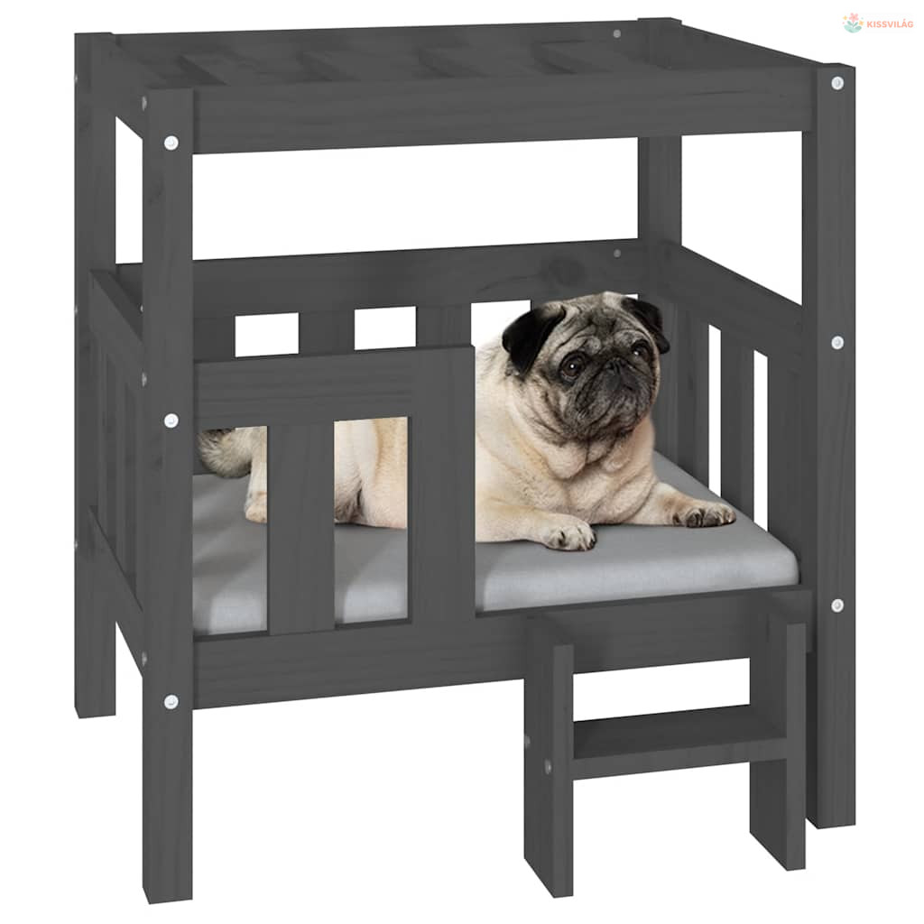 Szürke tömör fenyőfa kutyaágy 65,5x50,5x70 cm