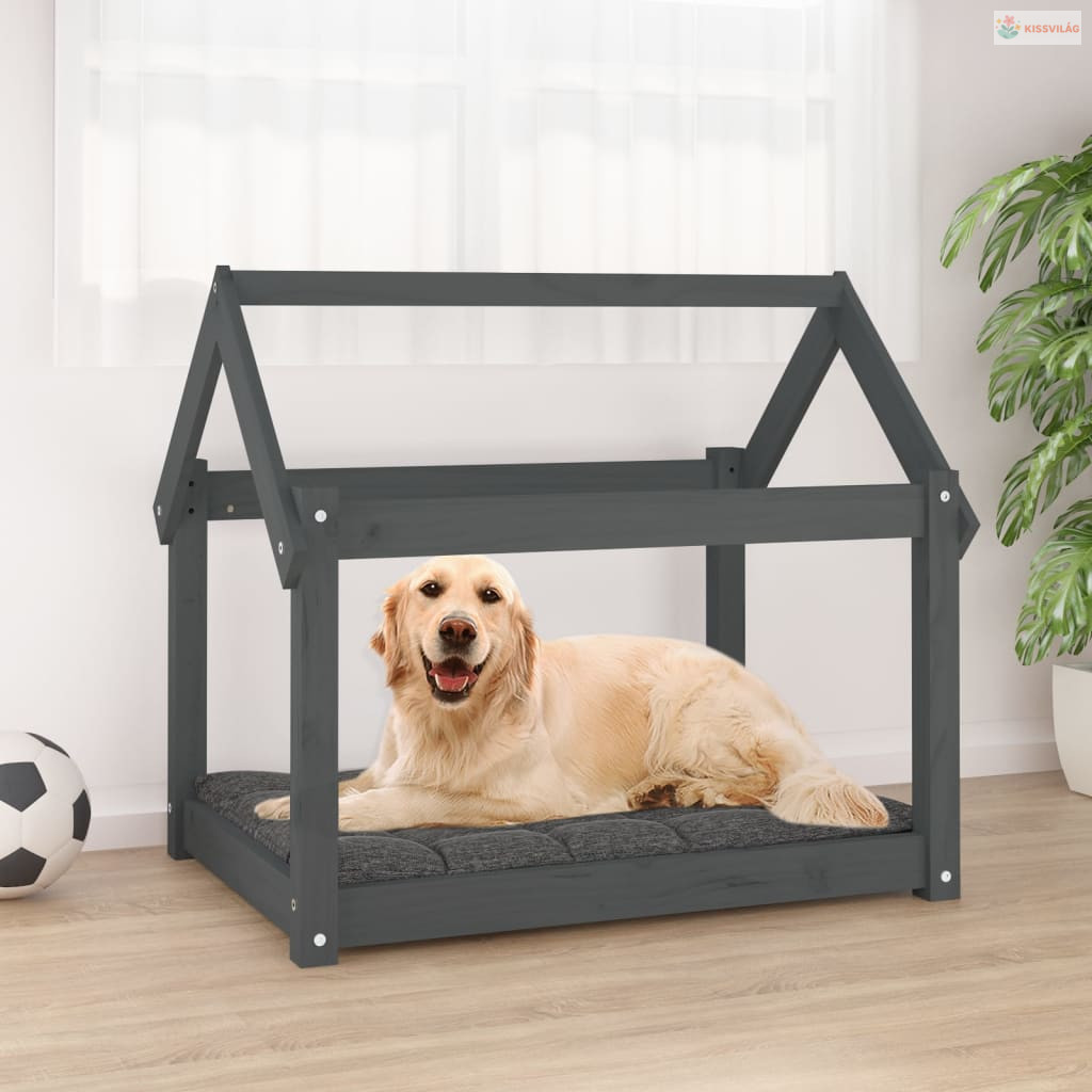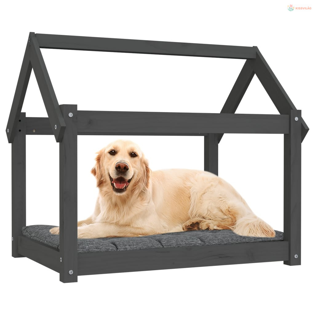 Szürke tömör fenyőfa kutyaágy 81 x 60 x 70 cm