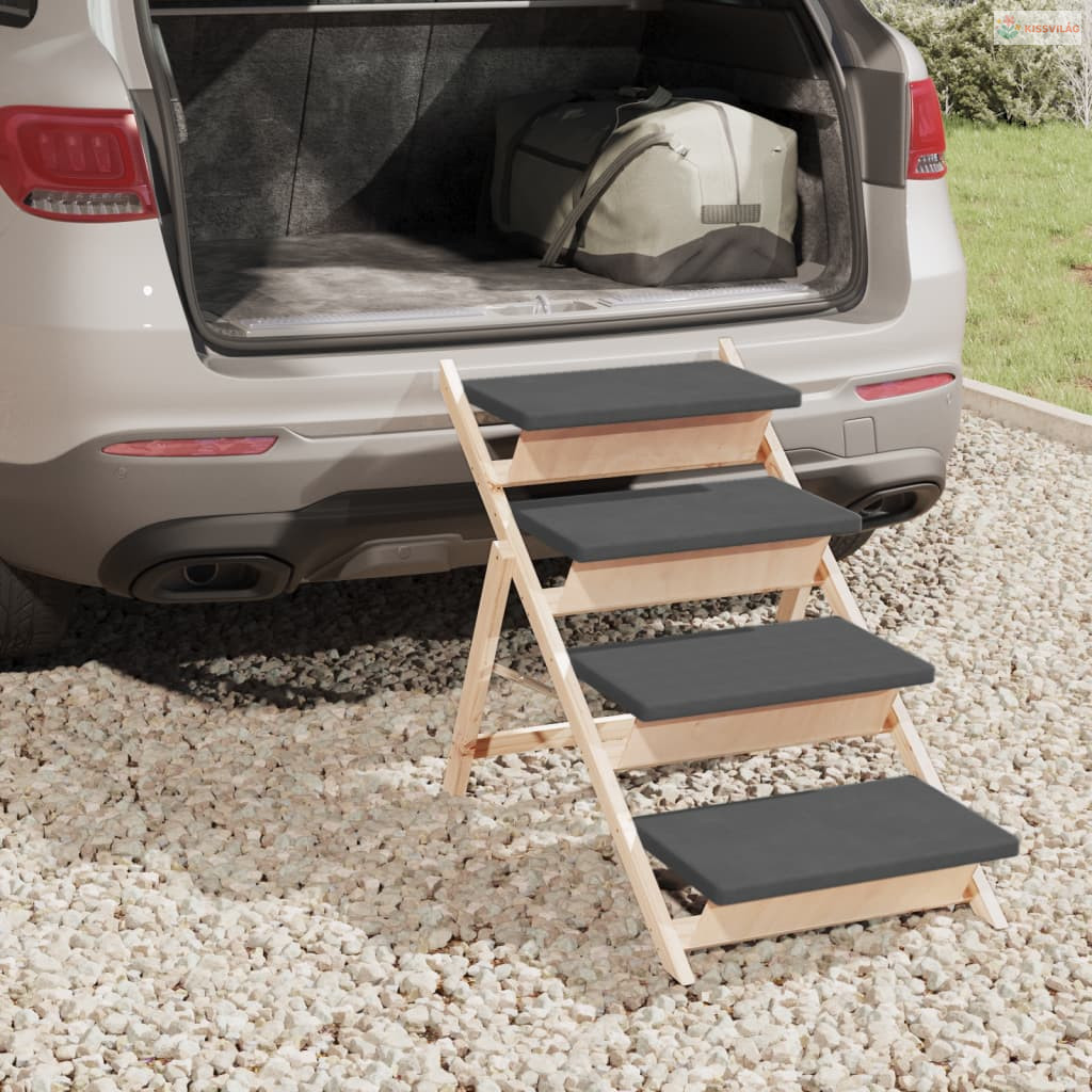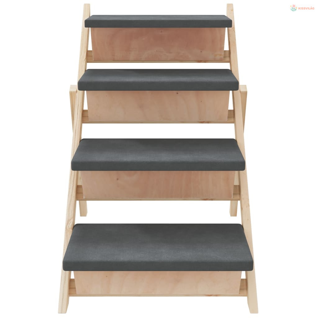 Szürke tömör fenyőfa kutyalépcső 105 x 47 cm