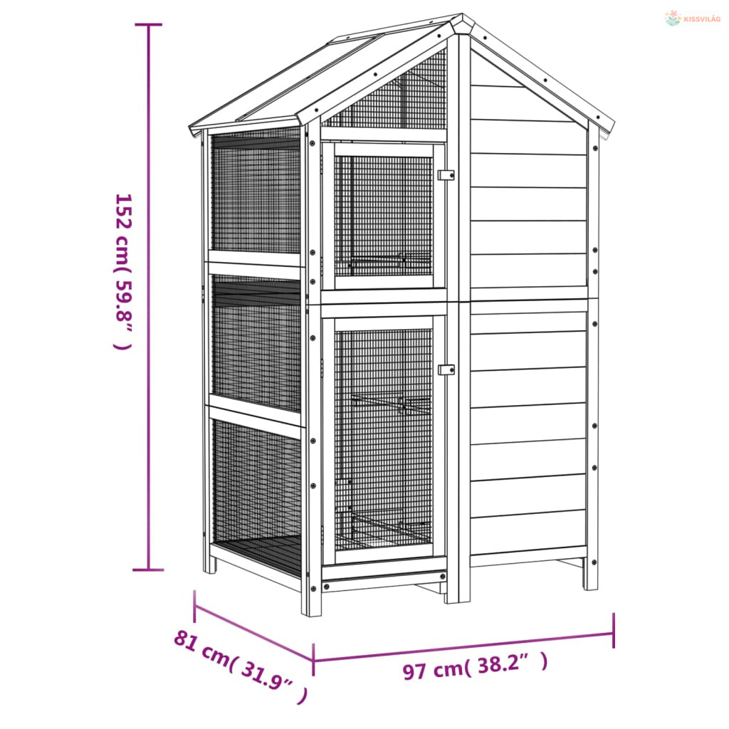Szürke tömör fenyőfa madárház 97 x 81 x 152 cm