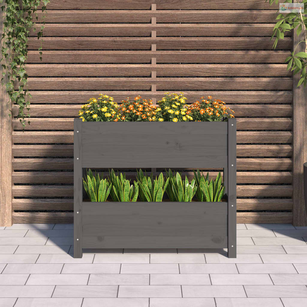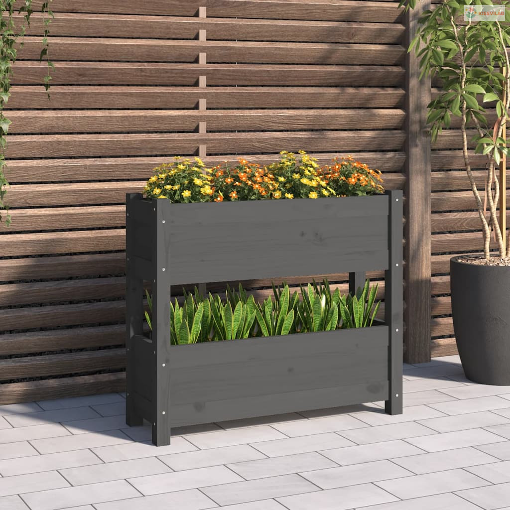 Szürke tömör fenyőfa növénytartó 77 x 25 x 66 cm