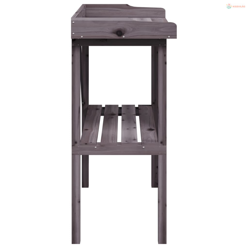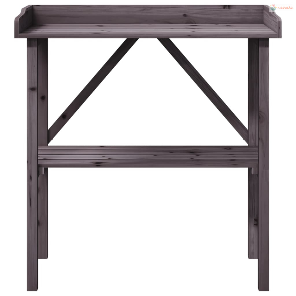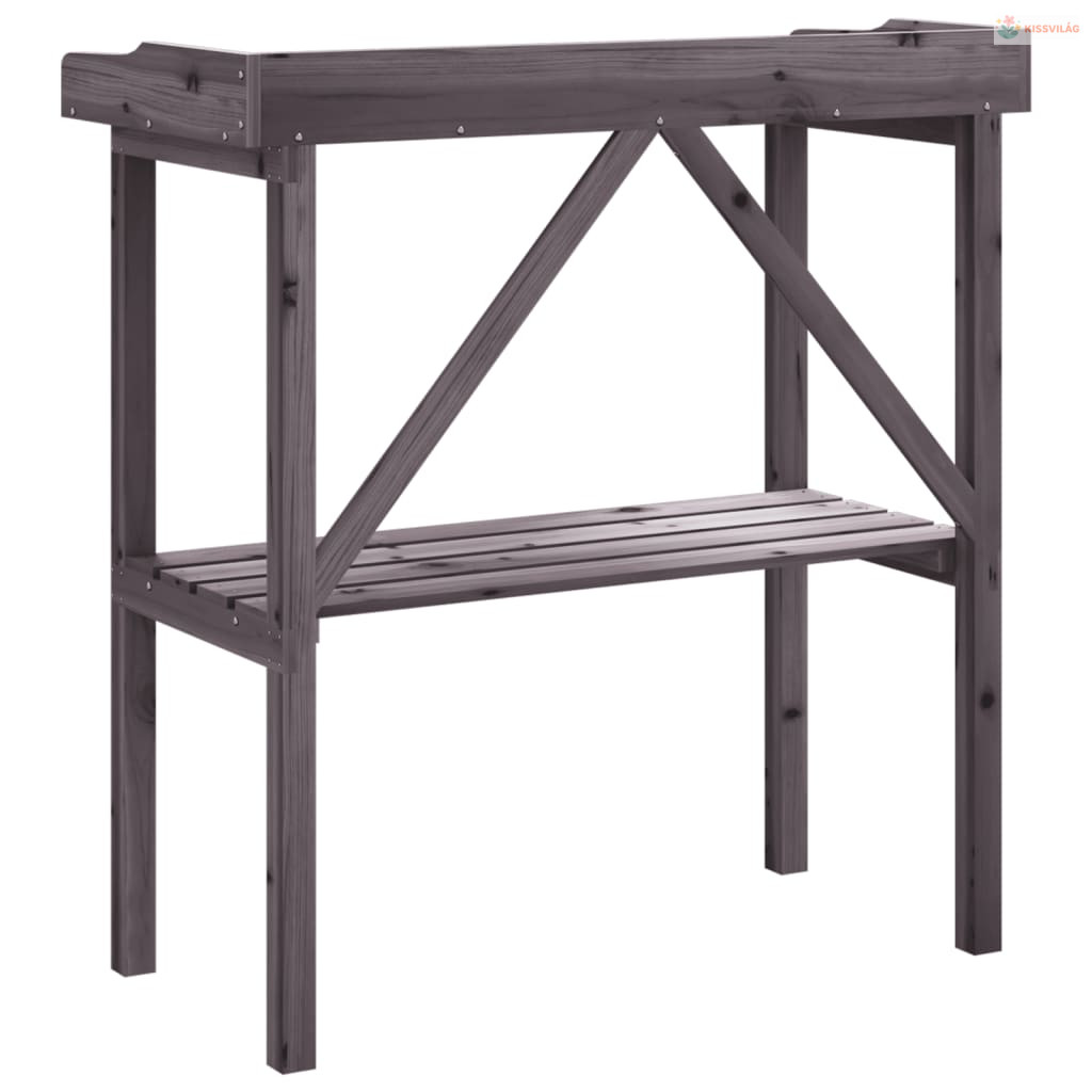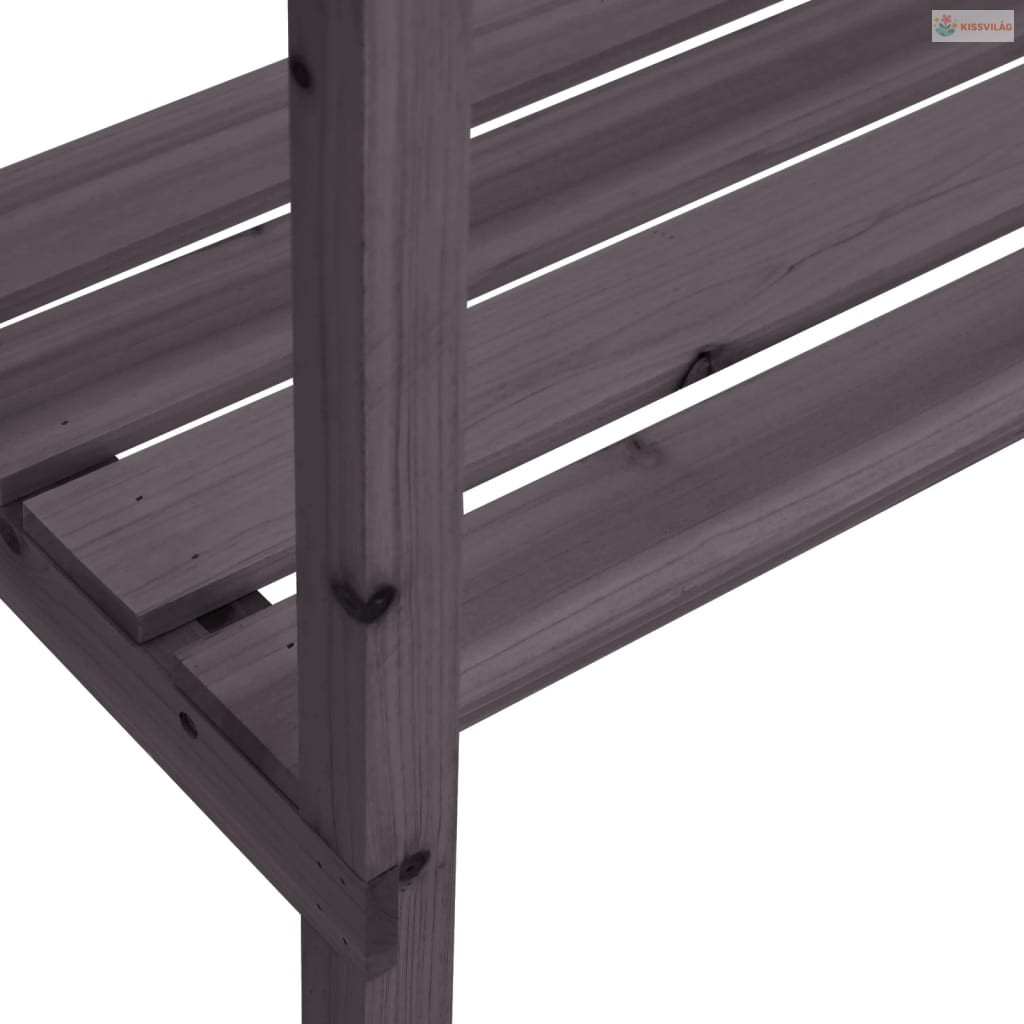 Szürke tömör fenyőfa növénytartó asztal polccal 78x38x82,5 cm