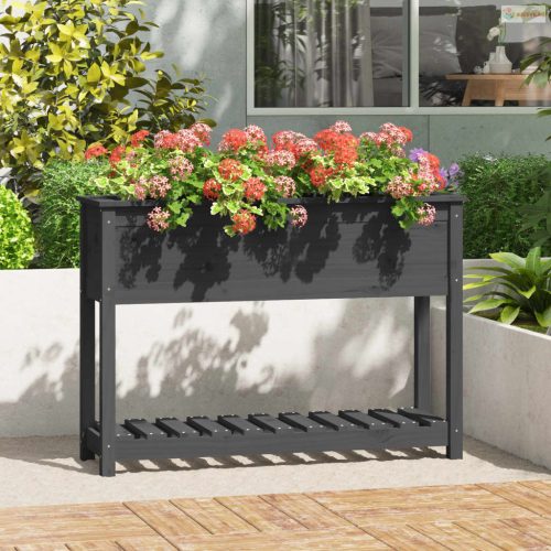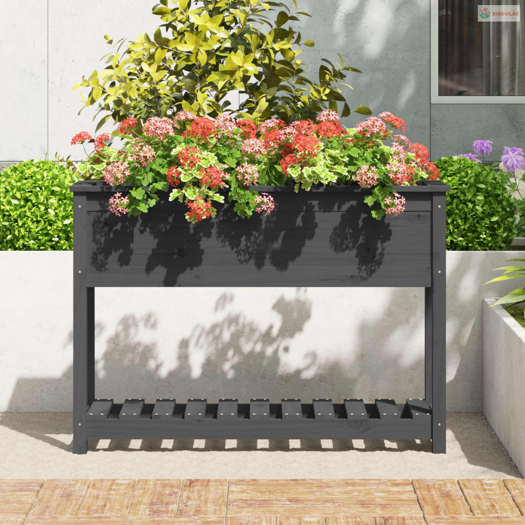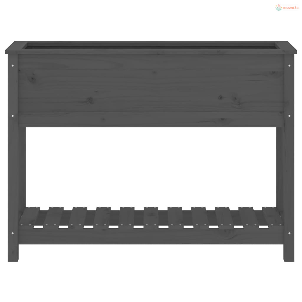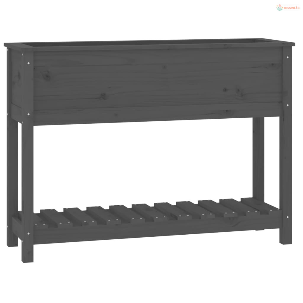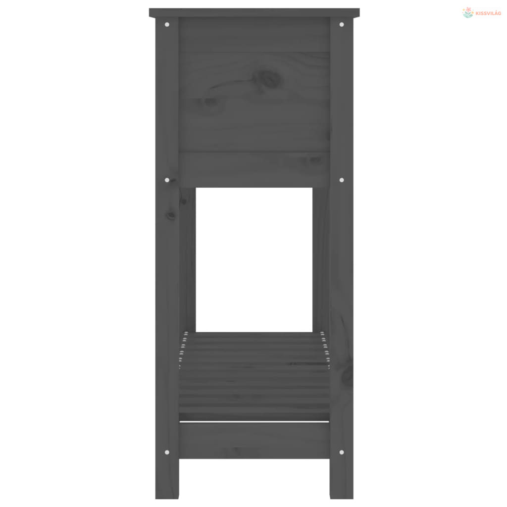 Szürke tömör fenyőfa növénytartó polccal 111,5x34,5x81 cm