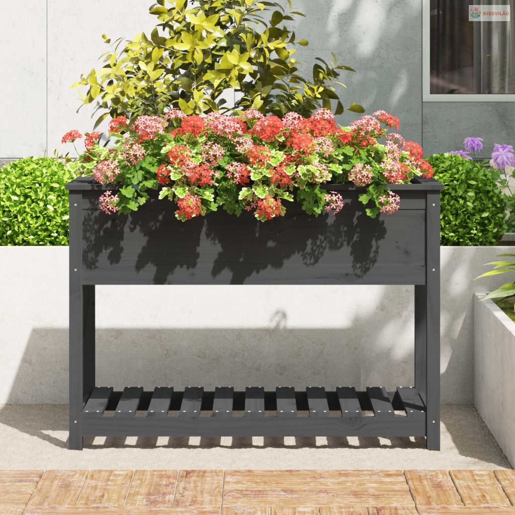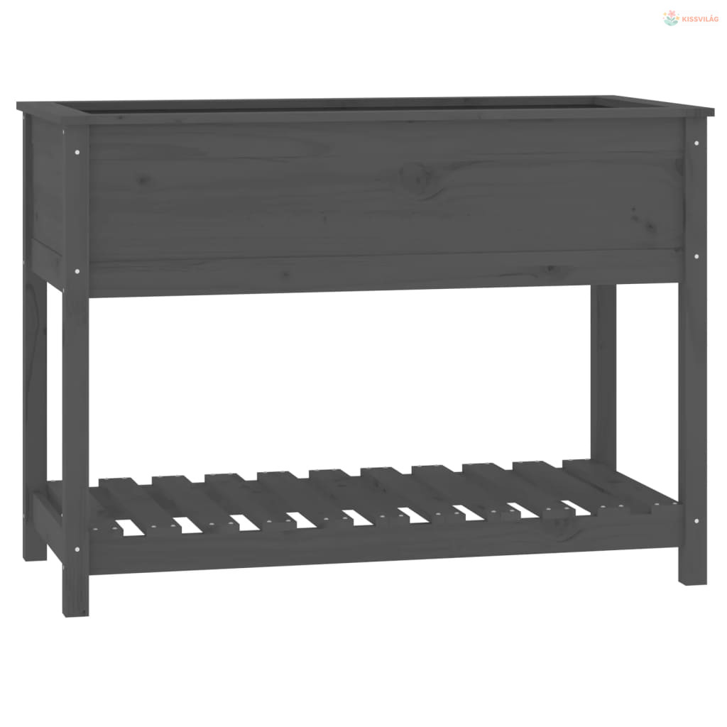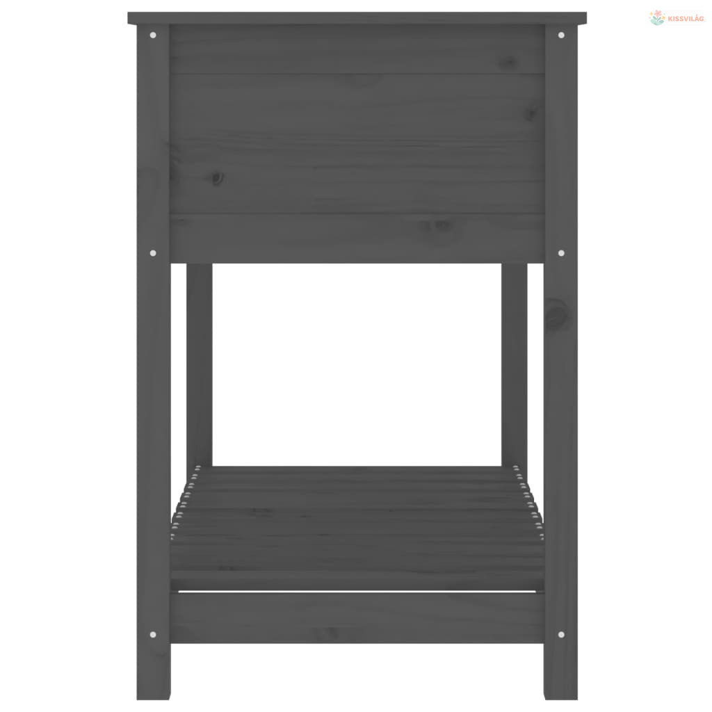 Szürke tömör fenyőfa növénytartó polccal 111,5x54x81 cm