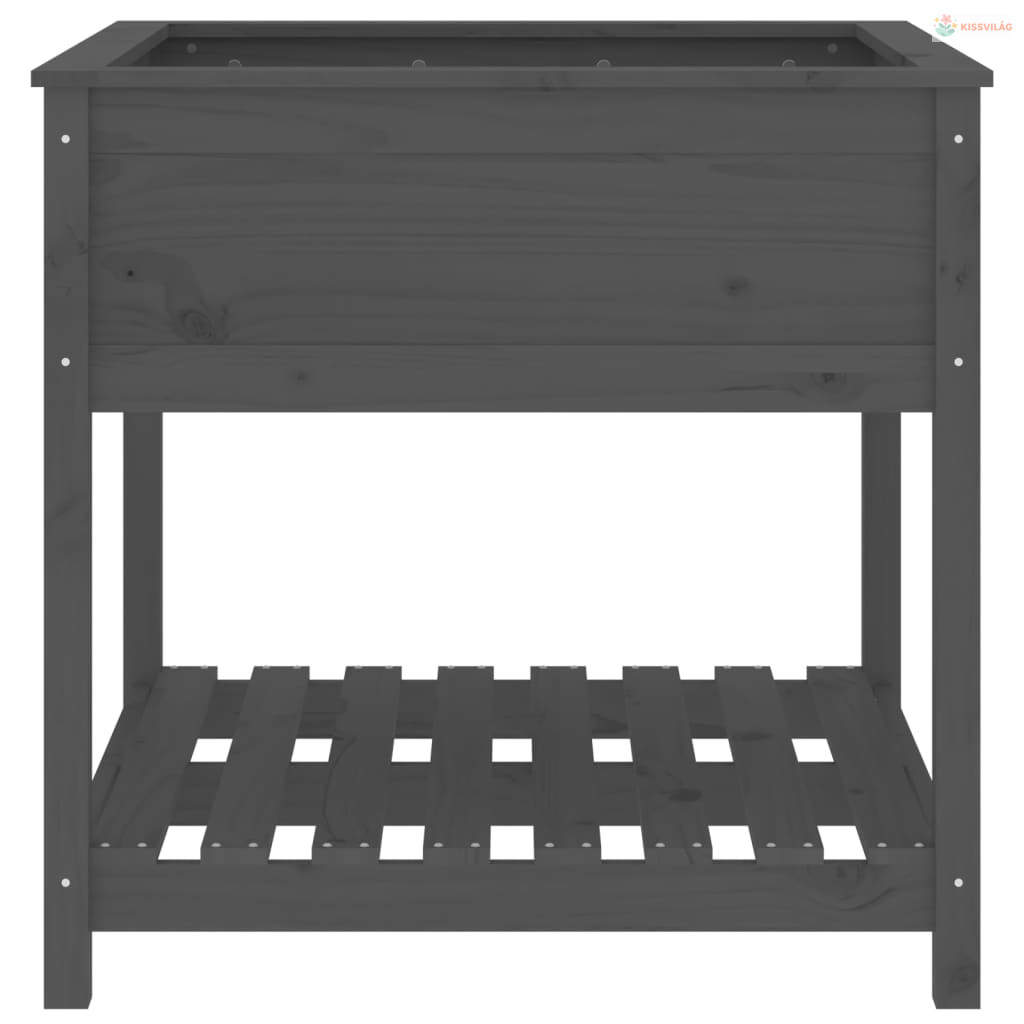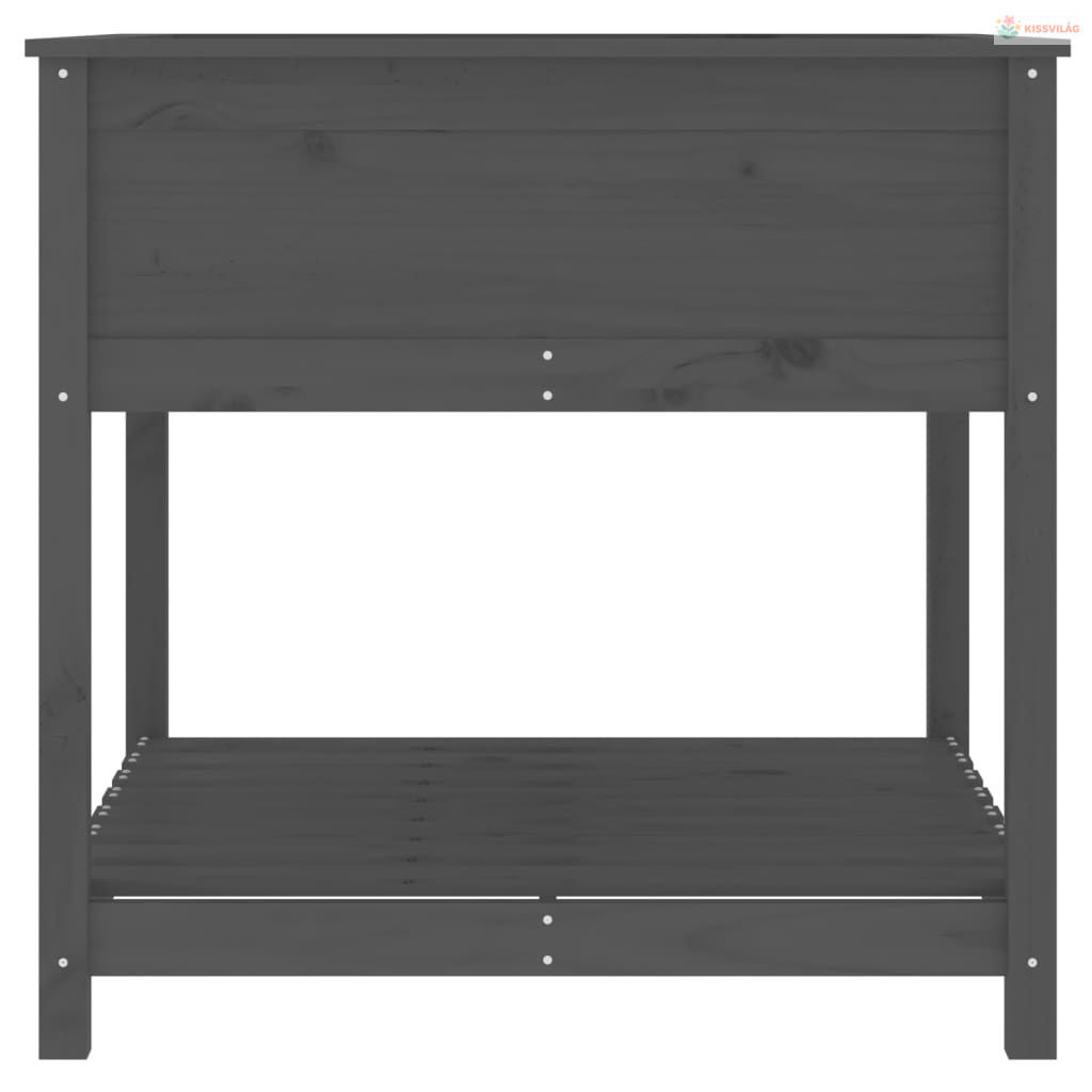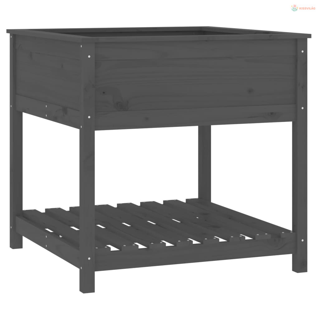 Szürke tömör fenyőfa növénytartó polccal 82,5x82,5x81 cm