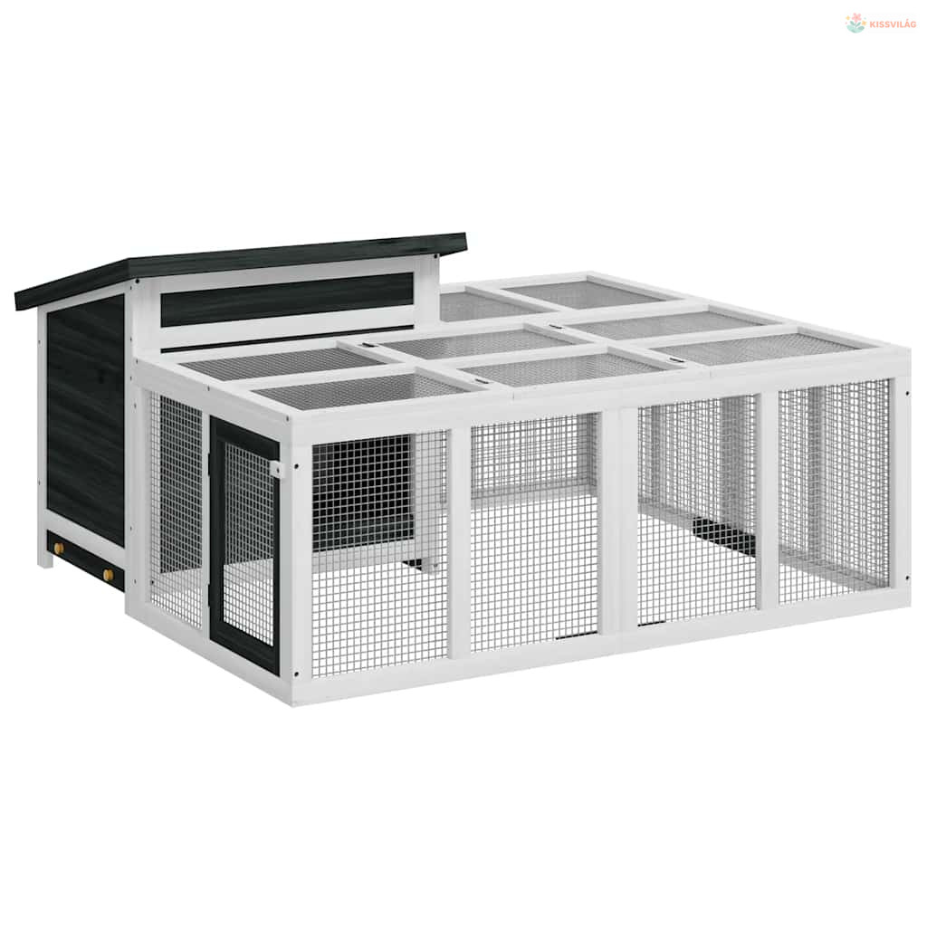 Szürke tömör fenyőfa nyúlketrec 144 x 123 x 67,5 cm