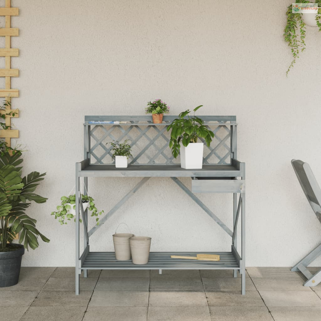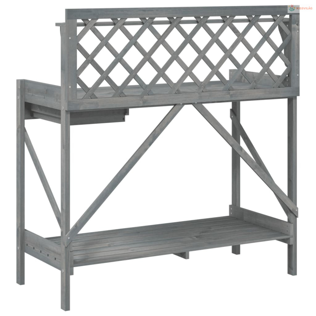 • Sokoldalú tárolóhely: Az ültető munkaasztal nyitott polcokkal, felső peremmel, oldalán fém kampókkal és fiókkal elegendő helyet biztosít a dolgai, például a kisebb kerti szerszámok, talaj, műtrágya stb. számára.