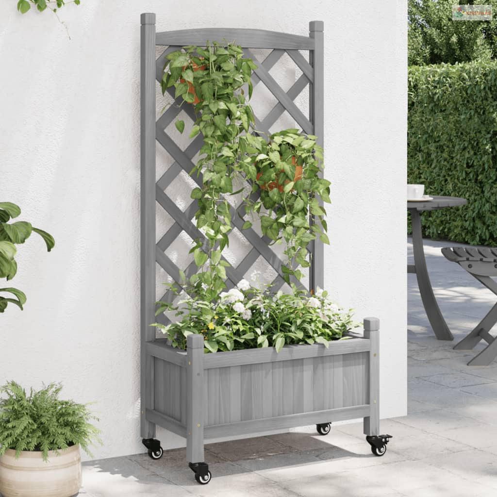 Ez a rácsos és kerekes fa ültetőláda kiváló választás a kertben, az udvaron és a teraszon a növények futtatásához.