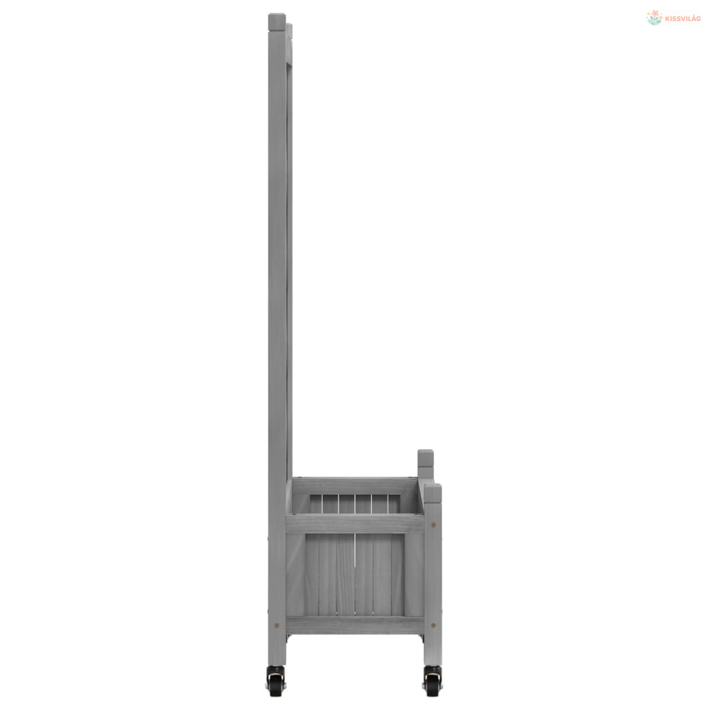 Szürke tömör fenyőfa rácsos virágláda kerekekkel
