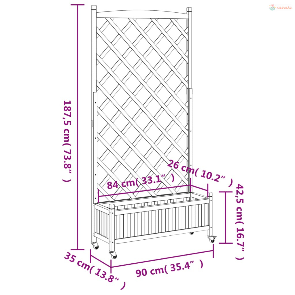 Ez a rácsos és kerekes fa ültetőláda kiváló választás a kertben, az udvaron és a teraszon a növények futtatásához.