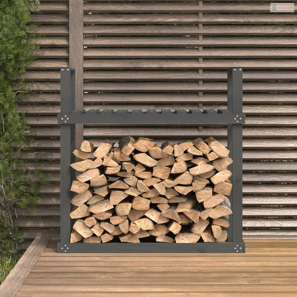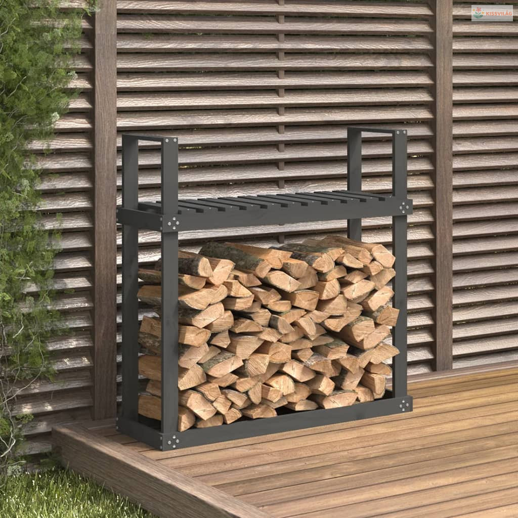 Szürke tömör fenyőfa tűzifatartó állvány 110x35x108,5 cm