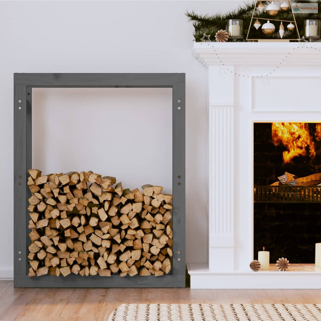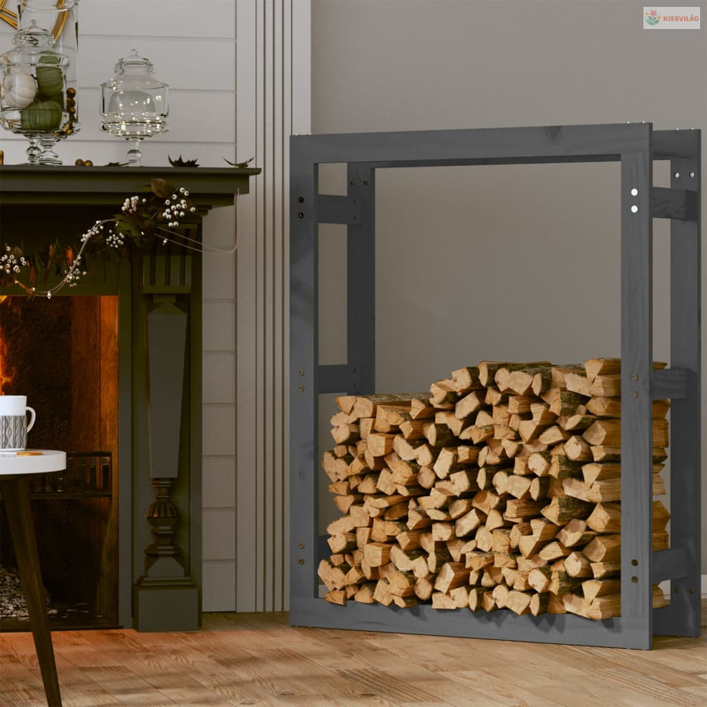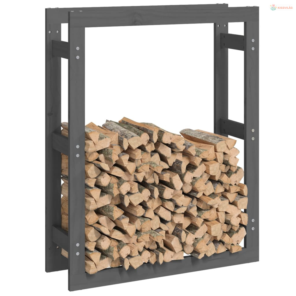 Szürke tömör fenyőfa tűzifatartó állvány 80 x 25 x 100 cm