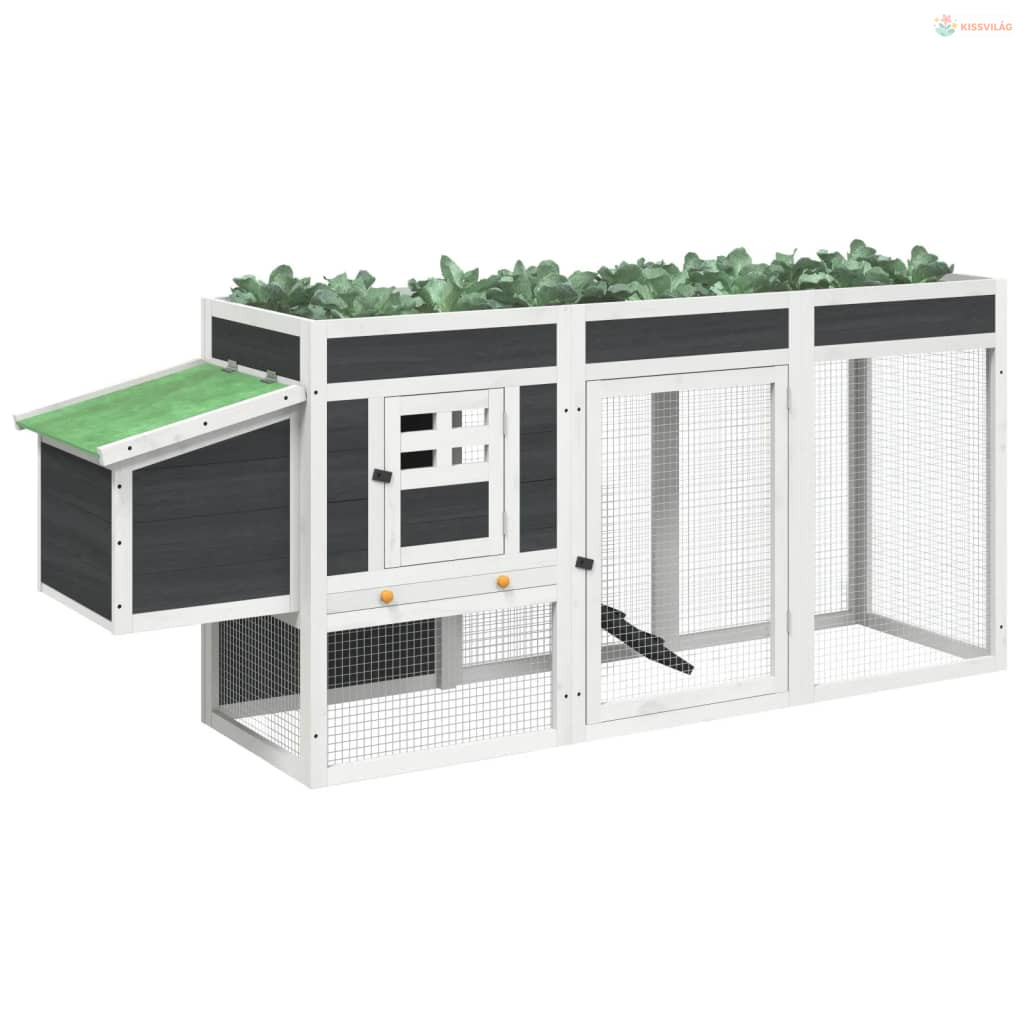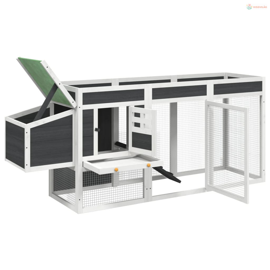 Szürke tömör fenyőfa tyúkól 204 x 50 x 84 cm