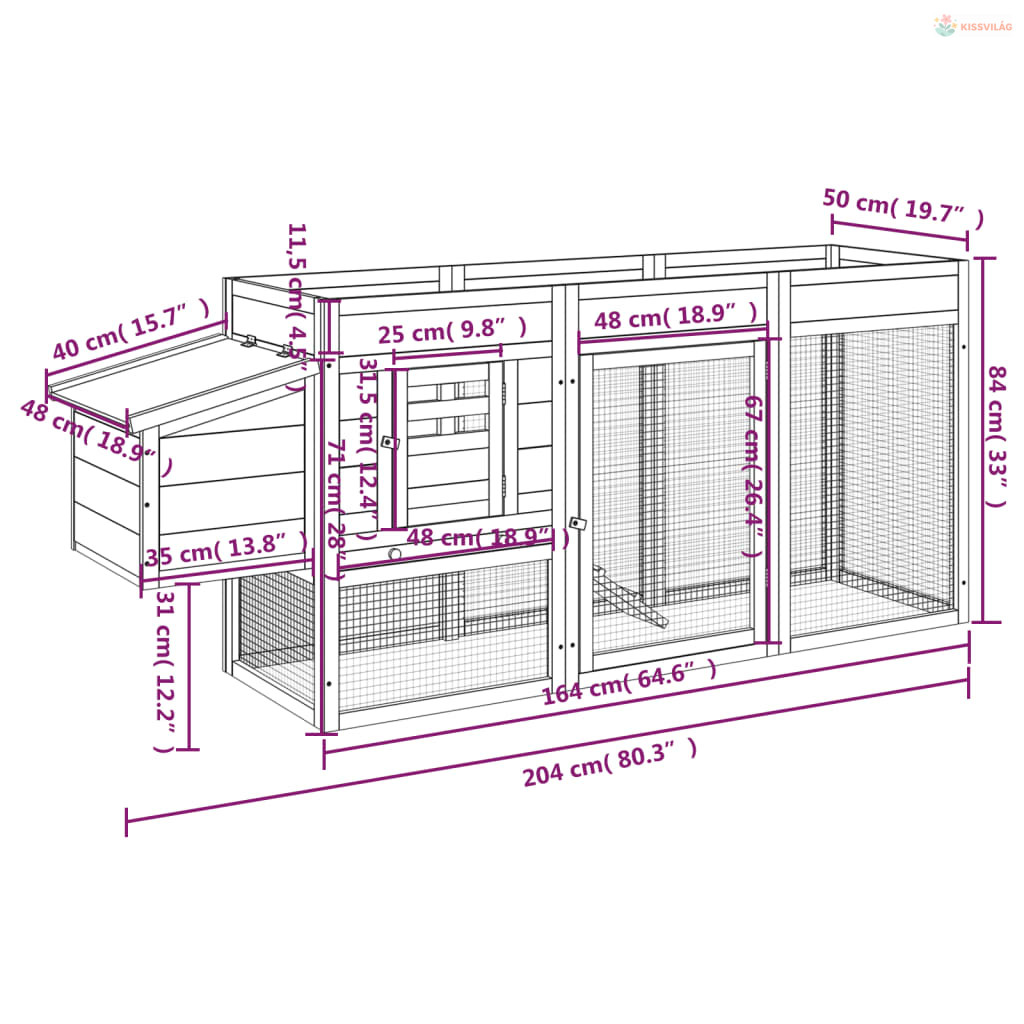 • Vízálló tető: A csirkeól vízálló teteje meleg, száraz, biztonságos és kényelmes környezetet biztosít kisállatai számára.