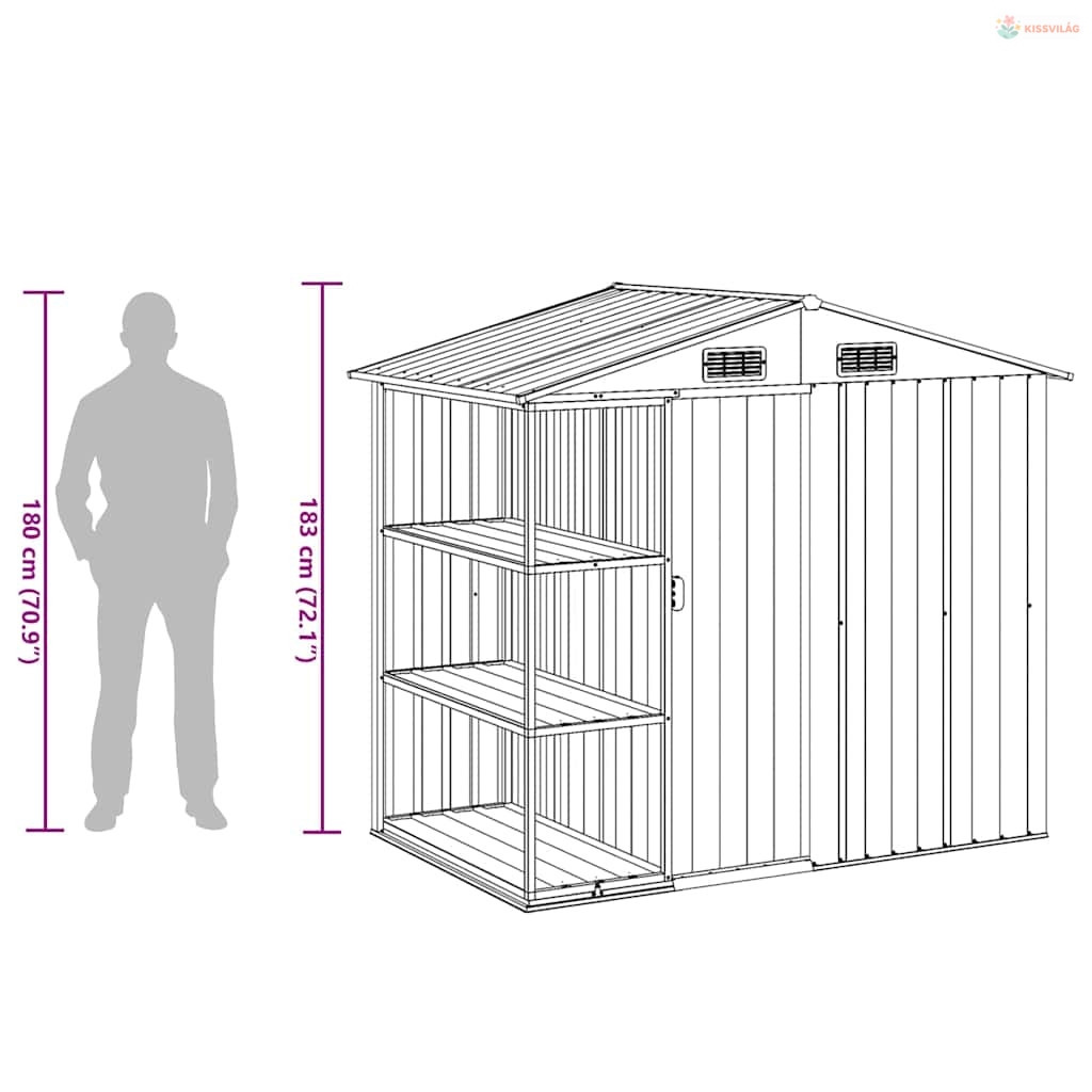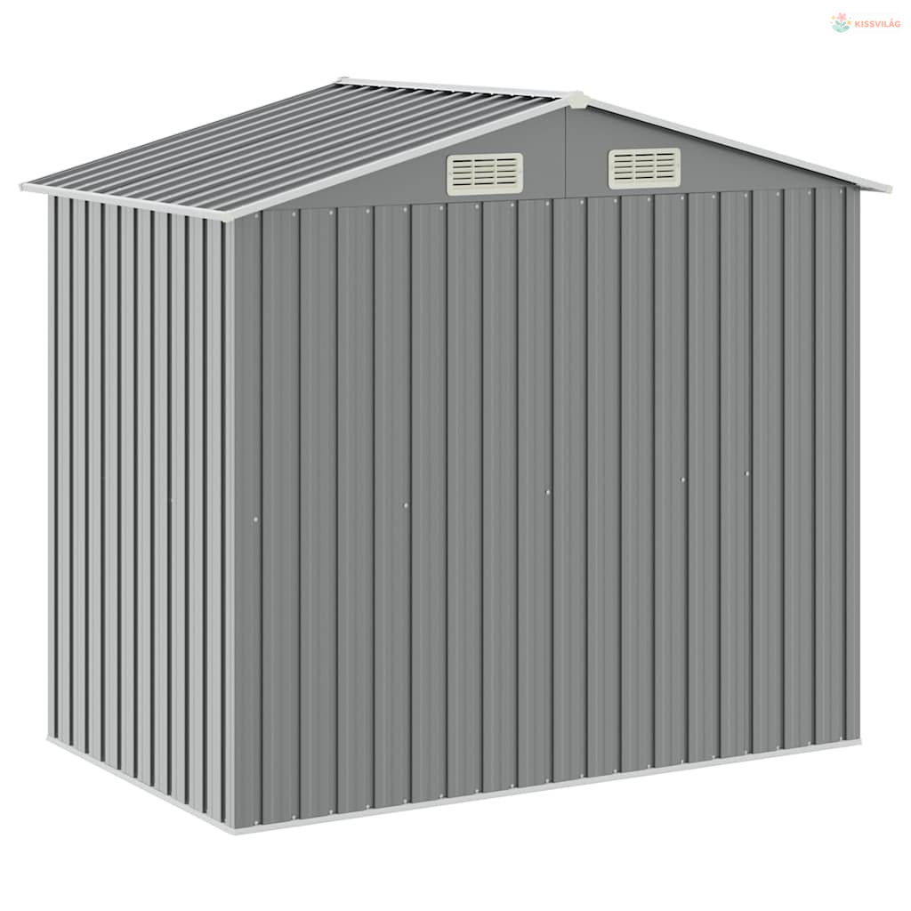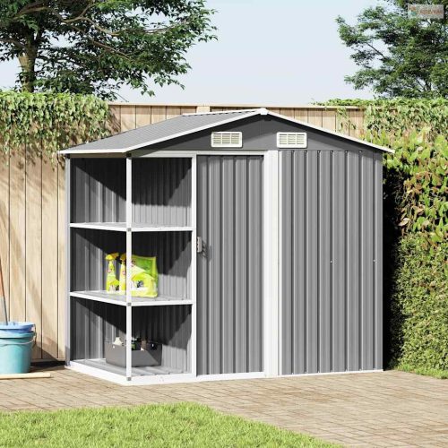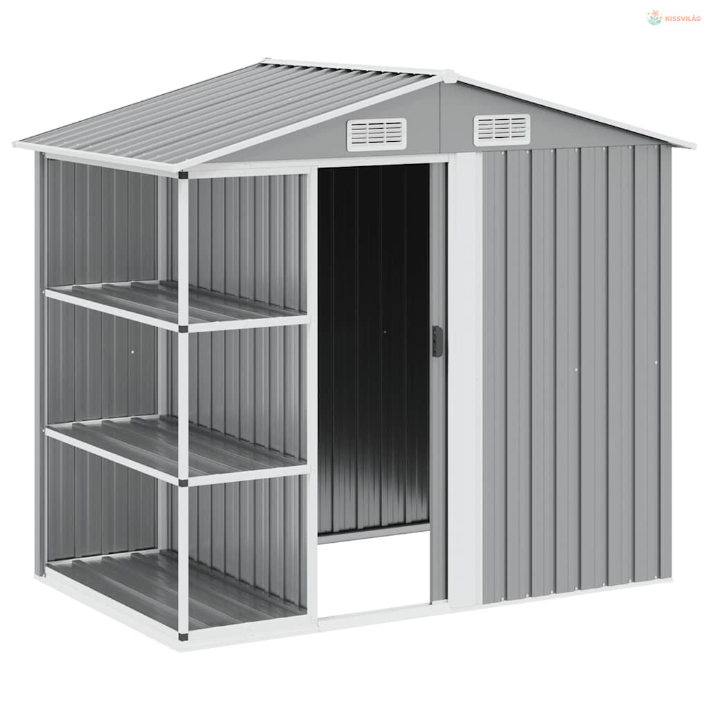 Szürke vas kerti fészer állvánnyal 205 x 130 x 183 cm