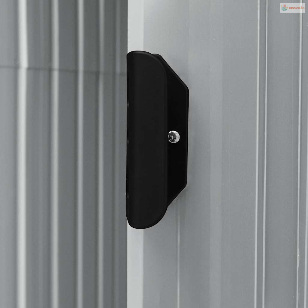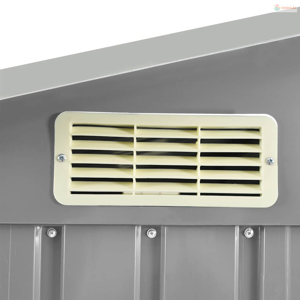 Ez a tároló kisház horganyzott vasból készült, így stabil és könnyen karbantartható. A kerti fészer eleje és háta is el lett látva szellőzőnyílásokkal, ezáltal biztosítva a kiváló szellőzést. A fészer egyetlen, műanyag kilinccsel felszerelt, elülső felén található tolóajtaja lehetővé teszi a könnyű be- és kijárást.