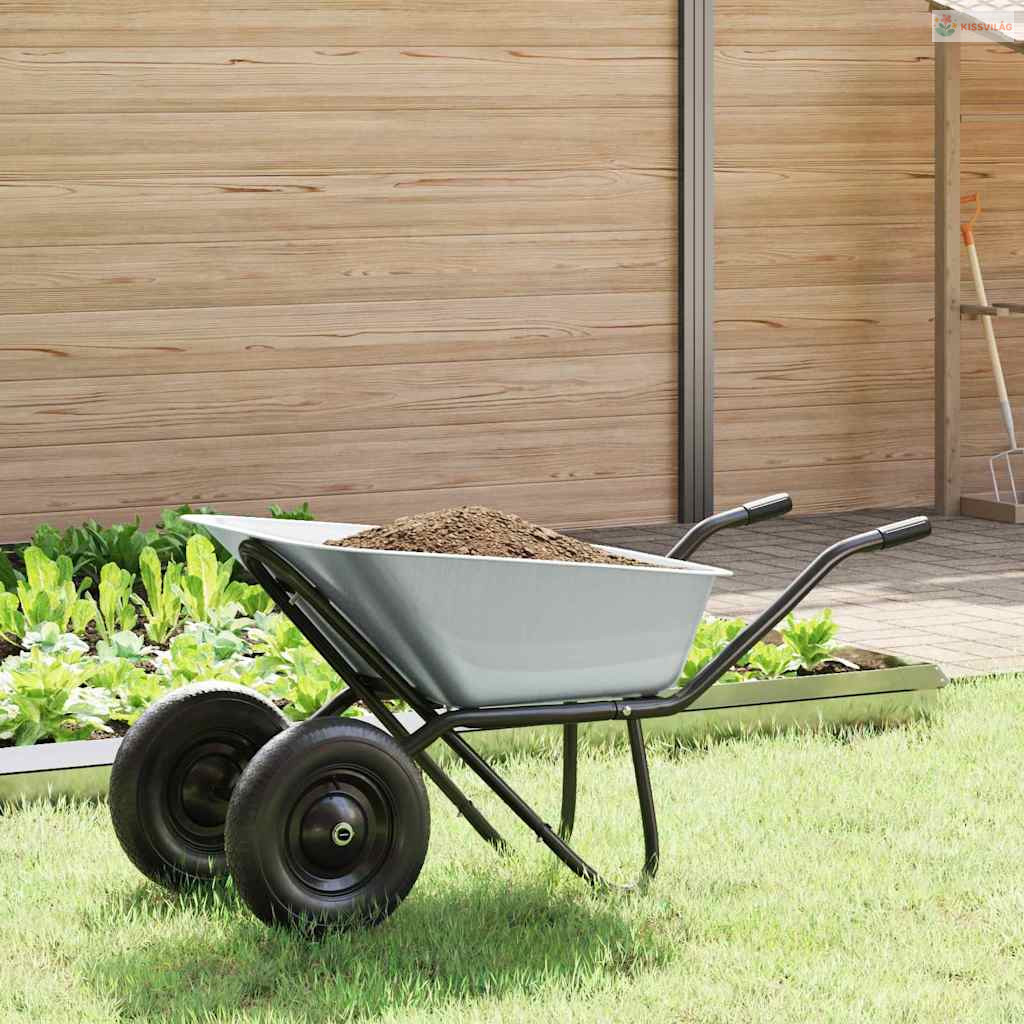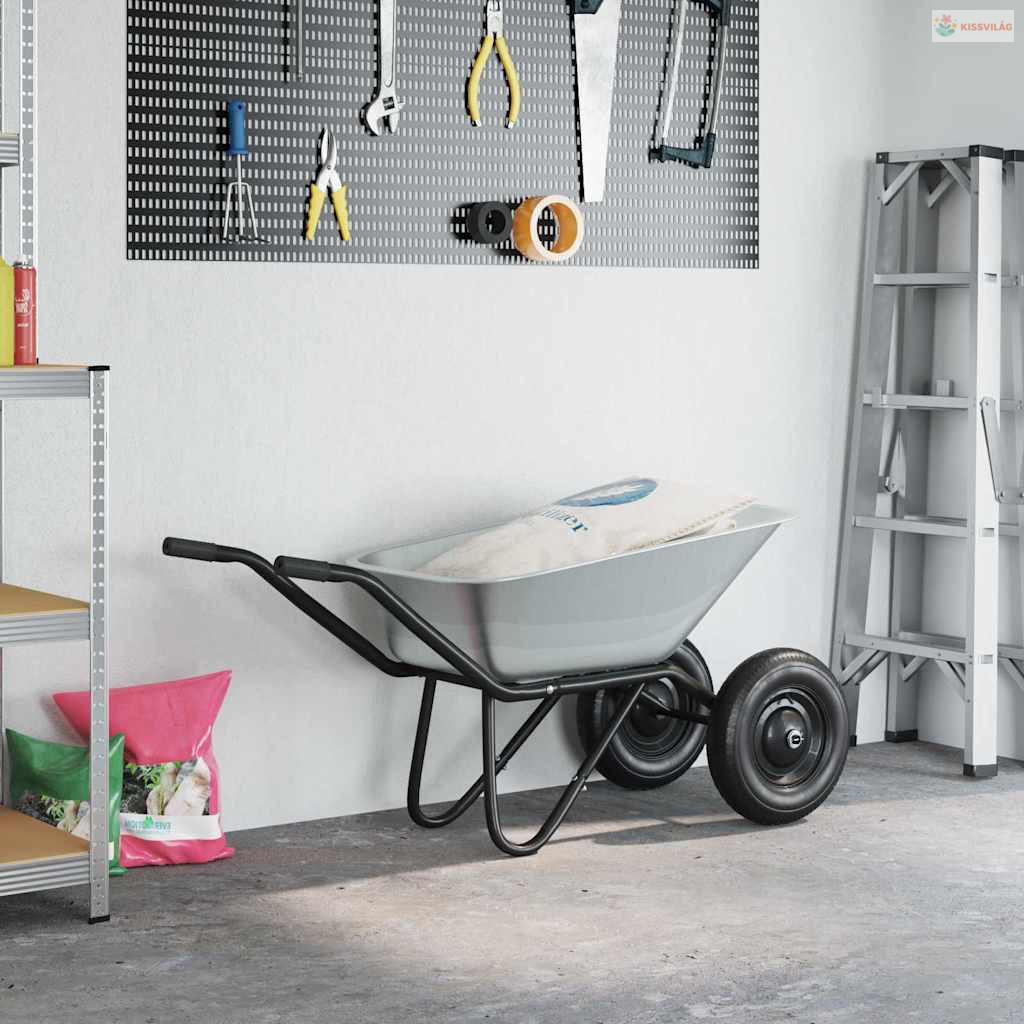 A fém kocsi elengedhetetlen mindenki számára, aki egyszerűen és hatékonyan szeretné karbantartani a kültéri területeit. Kerthez készült, klasszikus és funkcionális külsejével tartós és megbízható. Masszív ezüst és fekete színvilága minden kertstílushoz jól illik, esztétikailag vonzó és strapabíró dizájnt kínál. Nagyszerű talaj, növények és szerszámok szállítására, nélkülözhetetlen eszköz minden kültéri feladathoz, legyen szó profi tájépítőkről vagy kertészkedésről.