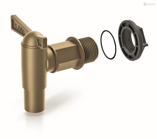 Esővízhordóhoz való csap, könnyebb vízöntés öntözőkannába vagy vödörbe, praktikus kar, műanyagból, méretek ( HxSZxM) :15 x 4 x 16 cm, arany színben