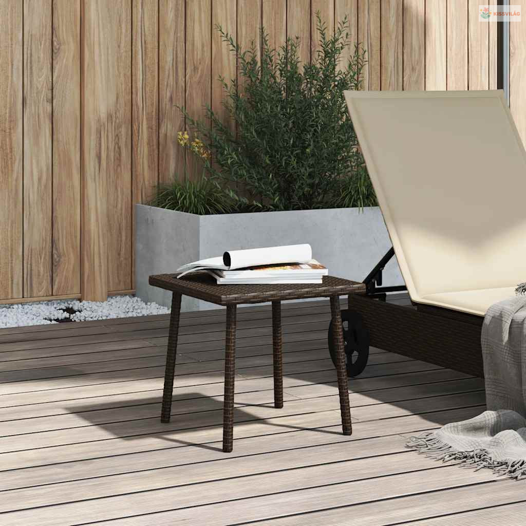 Téglalap barna polyrattan kerti dohányzóasztal 40x40x37cm