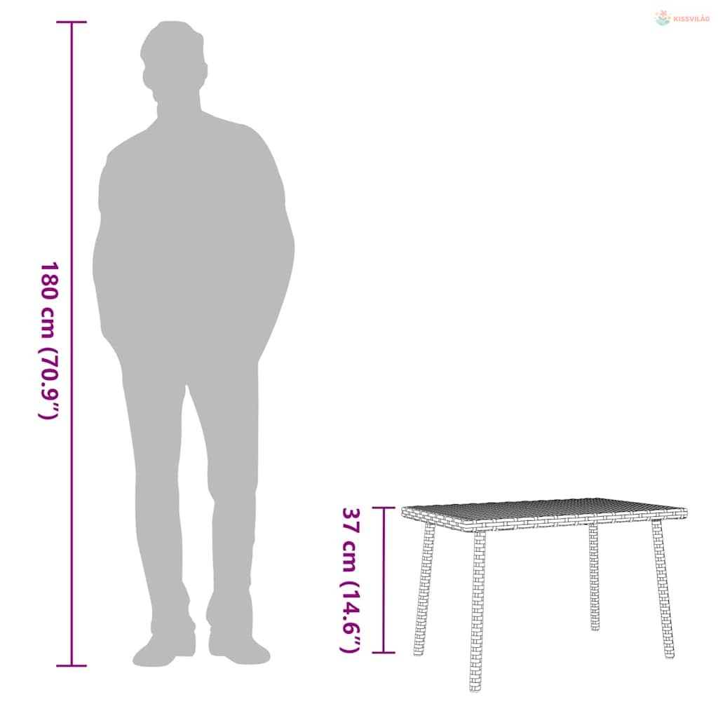 Téglalap bézs polyrattan kerti dohányzóasztal 60x40x37cm