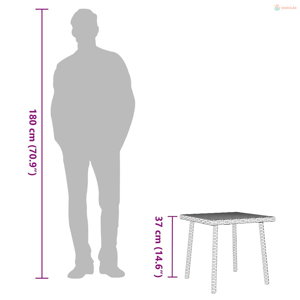 Téglalap szürke polyrattan kerti dohányzóasztal 40x40x37cm