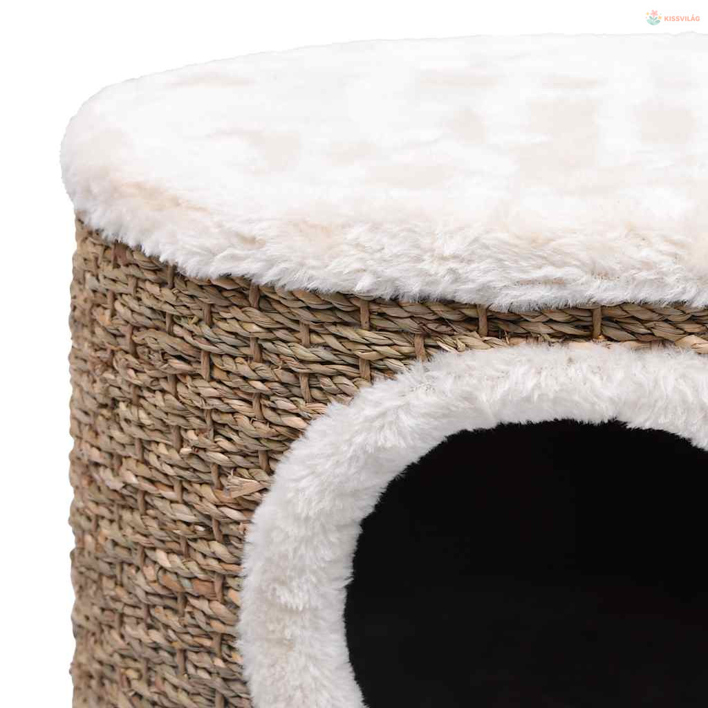 Az otthonos búvóhely nagyméretű bejárattal lett ellátva, így kényelmesen összegömbölyödhetnek és szunyókálhatnak benne. Macskakaparófaként is kiválóan használható, ahová felmászhatnak a macskái. A tengerifű szőnyegen megélesíthetik a karmukat.