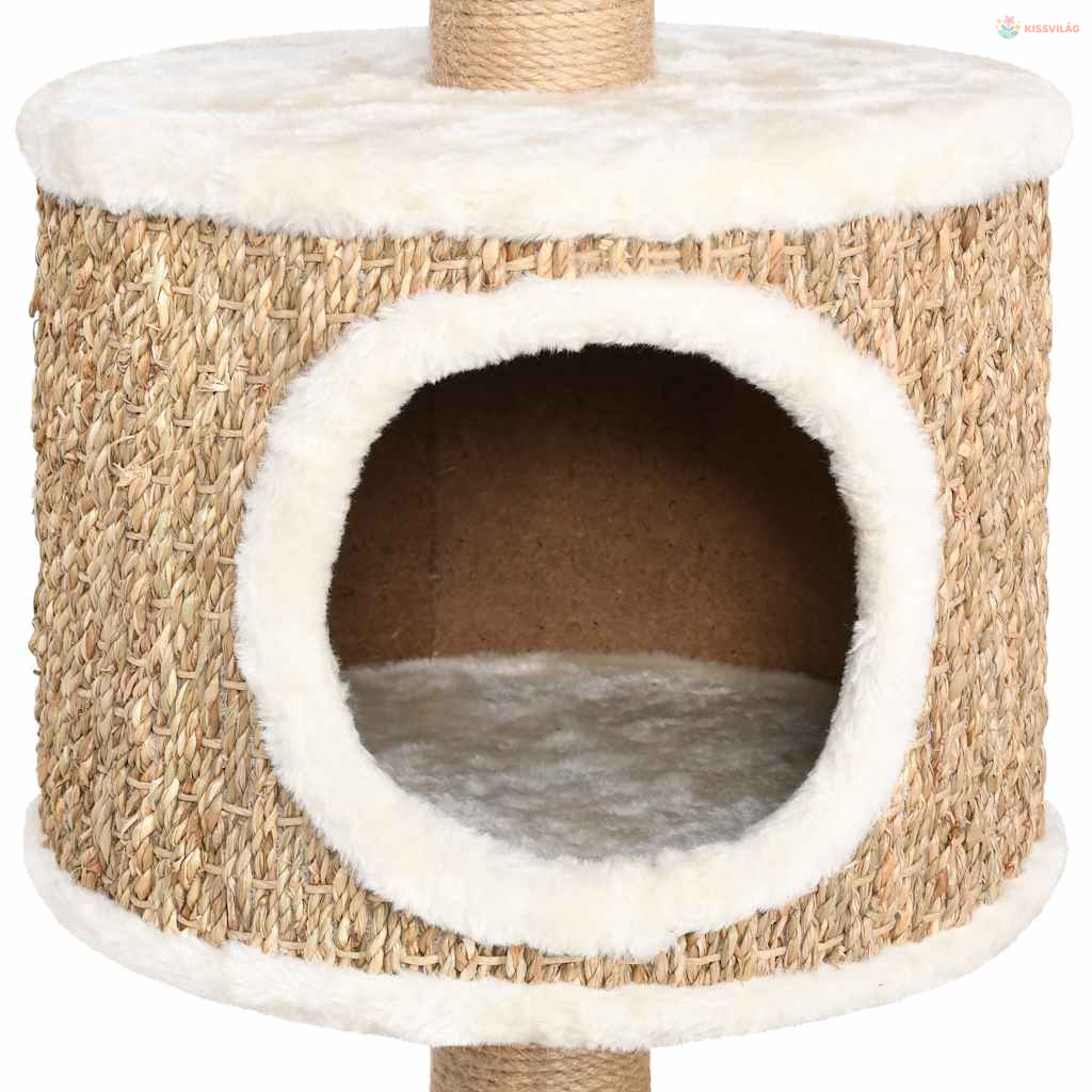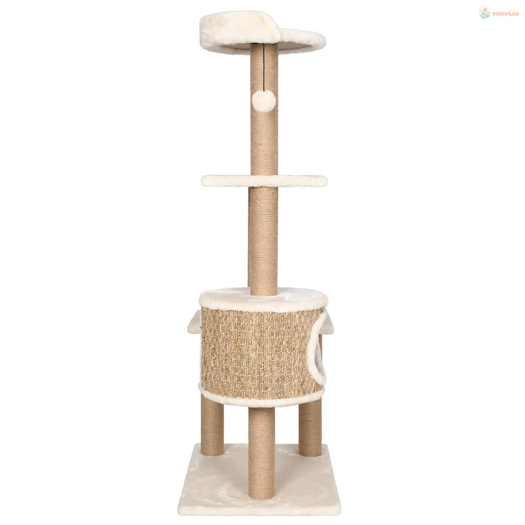 A magas macskakaparófa több ülőkével és egy remek házikóval is el lett látva, így a macskái kedvükre kaparászhatnak, mászkálhatnak és pihenhetnek rajta. A kaparóoszlopok tengerifűvel lettek körbetekerve, hogy kedvenc macskái kényelmesen élesítgethessék rajta a karmukat. Több ülőkével is el lett látva, amelyek kényelmes helyet biztosítanak bundás barátai számára a pihenéshez vagy a szunyókáláshoz. A lelógó labda további mókás elfoglaltságot kínál.