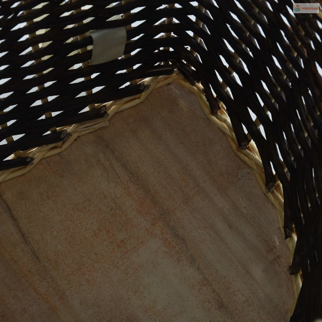 Ez a rusztikus tűzifahordozó kosár természetes fűzfából készült, így nagyszerű vidéki stílusú kiegészítője lehet lakberendezésének. A fogantyúk és az övek segítségével a tűzifa tároló könnyen hordozható. Erős, nagy teherbírású konstrukciója biztosítja a hosszútávú élettartamot. Sokoldalúságának köszönhetően ez a fonott hátikosár mosodai vagy zöldségfélék tárolására szolgáló kosárként is használható.