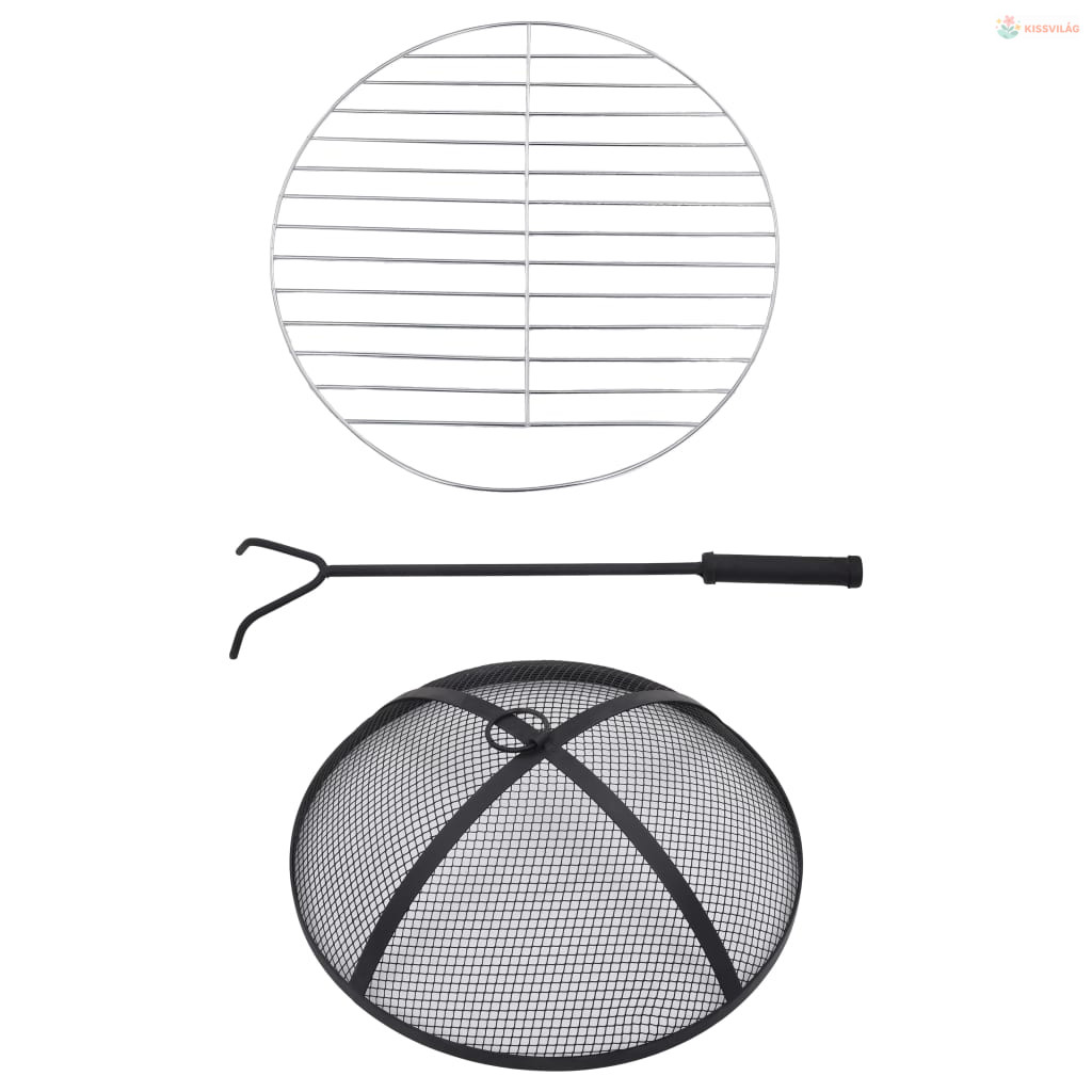 Az acélból készült tűztál kiválóan nyeli el és sugározza a hőt. Száraz fa, rönk vagy faszén égetésére használható. A tűztálat egy négylábú állvány támasztja alá. A mellékelt biztonsági háló lehetővé teszi az égő tűz megfigyelését, elzárja a tüzet a biztonság érdekében, és megakadályozza a szikrák és a törmelék kirepülését. A mellékelt piszkavassal a hálós fedelet leveheti, illetve átrendezheti a rönköket és a szenet. Ezenkívül a tűzrakó asztal grillezőként is használható. Kerámia felülete tökéletes helyet kínál italok és sütnivalók tárolására. Kérjük, vegye figyelembe, hogy a termék nem alkalmas arra, hogy hideg időjárás esetén kint hagyja.