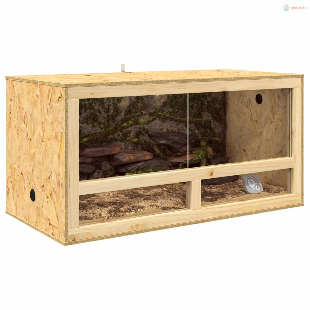 • Minőségi anyagok: A tartós OSB-ből és edzett üvegből készült terrárium verhetetlen tartósságot és jó láthatóságot nyújt. A vastag OSB panelek biztonságos vázat adnak, míg az edzett üveg világos rálátást biztosít a kedvenceid napi tevékenységeire.