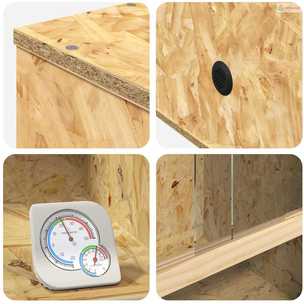 • Robosztus OSB és üveg: Ez a terrárium prémium OSB-ből és üvegből készült, hogy tartós környezetet biztosítson. A természetes OSB textúra rusztikus, földközeli stílust ad, ami jól passzol különböző belső terekhez. Erős felépítése miatt bírja a mindennapos használatot, biztonságos menedéket adva a hüllőknek és más kisállatoknak.