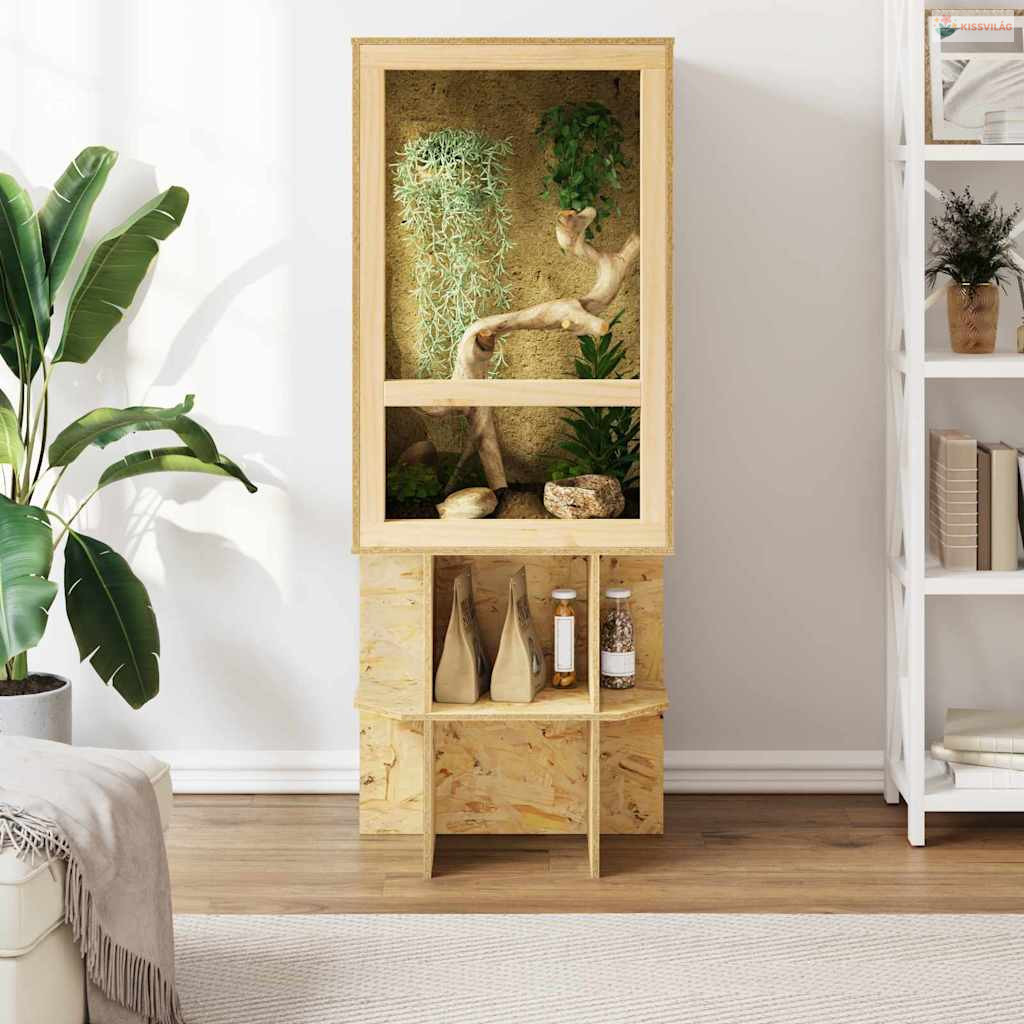 Az OSB terrárium alap egy szabadon álló tároló megoldás, amit a hüllők igényei alapján terveztek. Rusztikus OSB-ből készült, ami jól passzol a természetes kinézethez és a masszív szerkezethez. Matte felülete elég helyet biztosít a hüllők vagy rágcsálók élőhelyének megteremtéséhez, és praktikus használatot nyújt. Csak beltérre való, így ideális kiegészítője bármilyen háziállat-rajongó gyűjteményének, amely fokozza a kedvencek és a gazdáik élményét.
