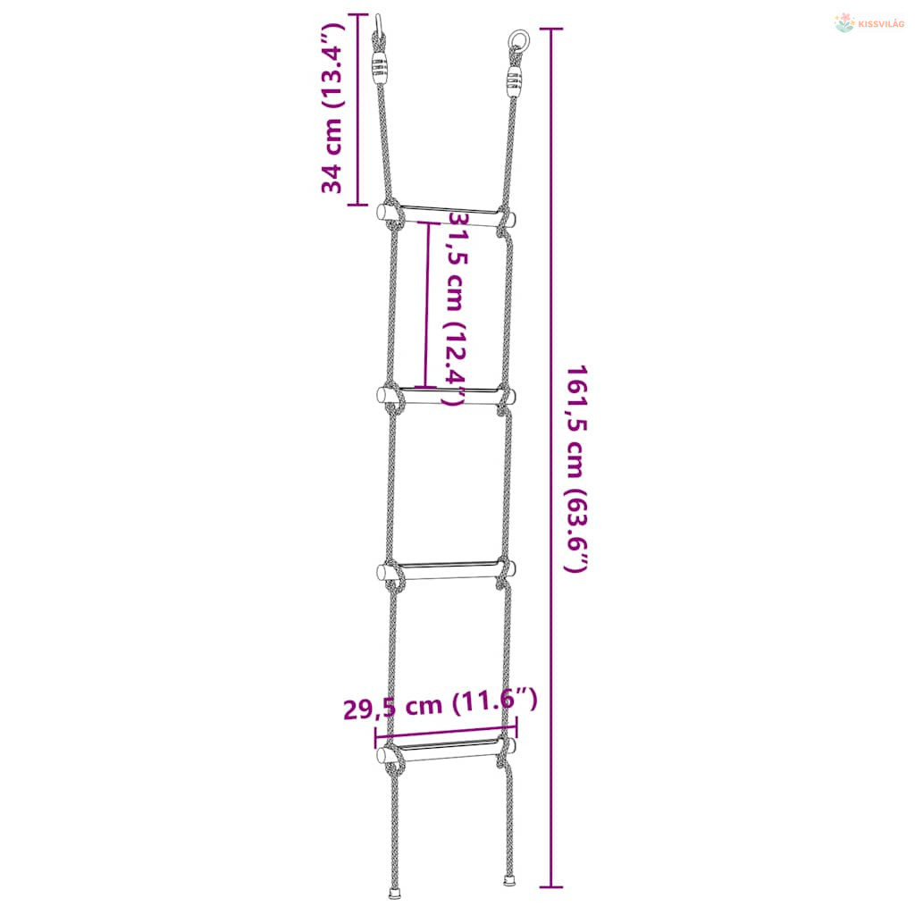 Ez a kötéllétra ideális kiegészítője bármilyen hintakészletnek vagy mászókának. Nagyszerű módja annak, hogy a gyerekek jól érezzék magukat és aktívak maradjanak a kertjükben.